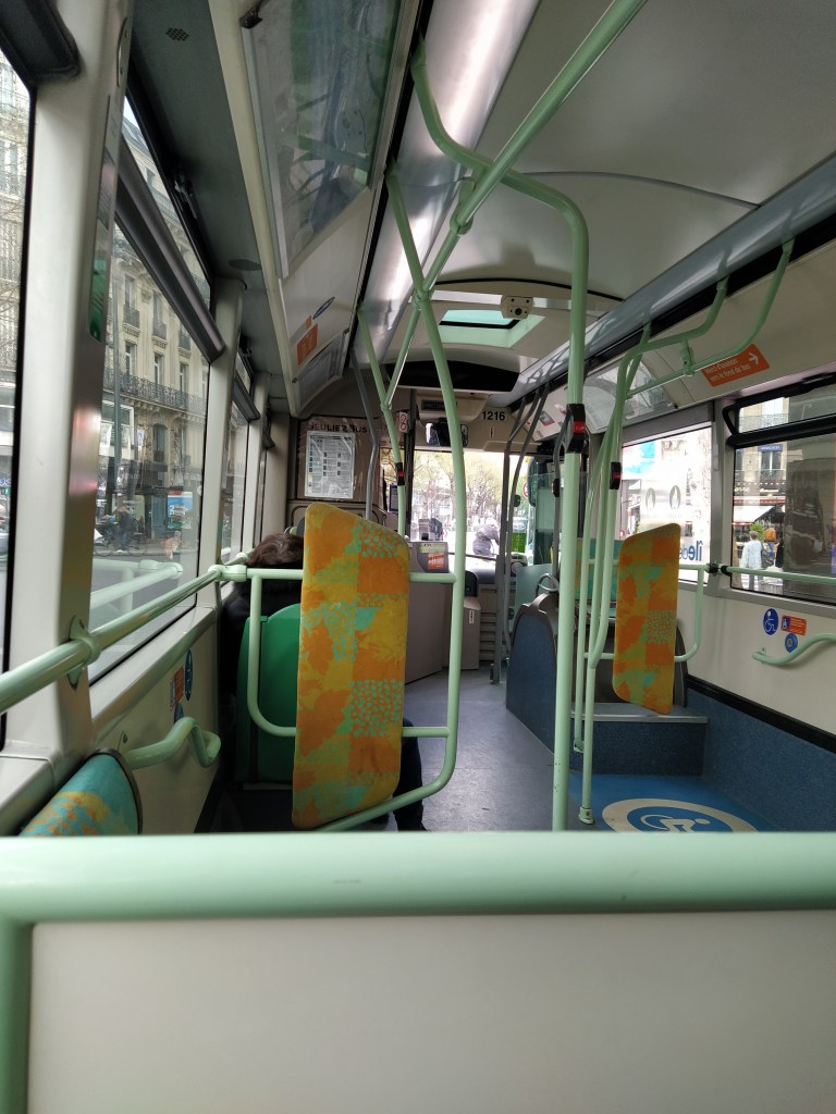 The Trainline app told us the train was sold out and our compartment was busy with several passengers arriving, leaving and being replaced as we progressed towards Paris. A taxi from Austerlitz (the bus might be too big a challenge for Mr McGregor armed with a suitcase and a stick) took us into the thick of the evening traffic jam and eventually to the door of our hotel, after some muttering about not being allowed to park.