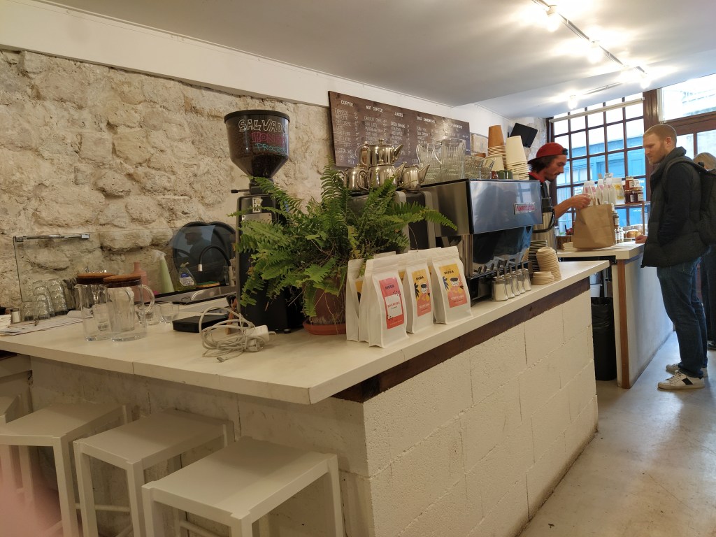 It was interesting to note that the cafe had mostly vegetarian options. Something that still surprises in France but we were in the cosmopolitan capital, after all. To watch my husband eating a vegetarian ‘hotdog’ accompanied by a non alcohol beer was a first.