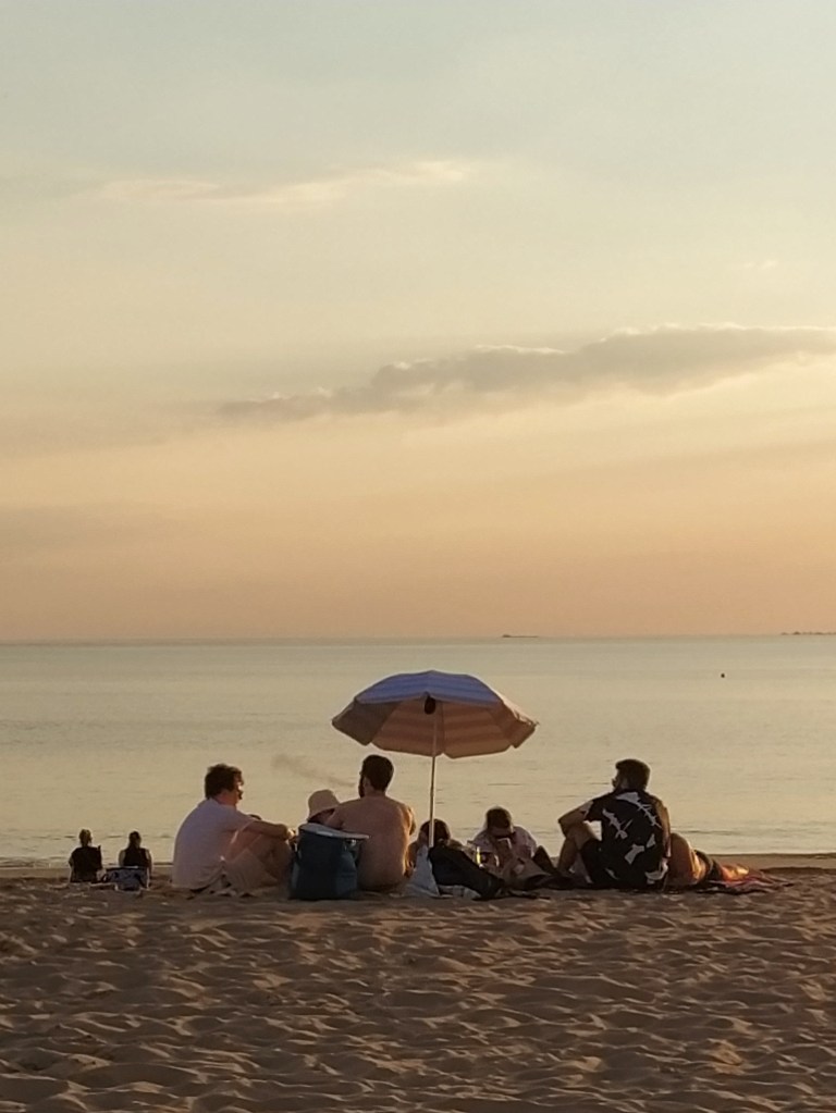 Feeling replete and very satisfied with our first evening we walked slowly back along the front watching families finishing their al fresco beach picnics while youngsters swam and played ball in the shallows.