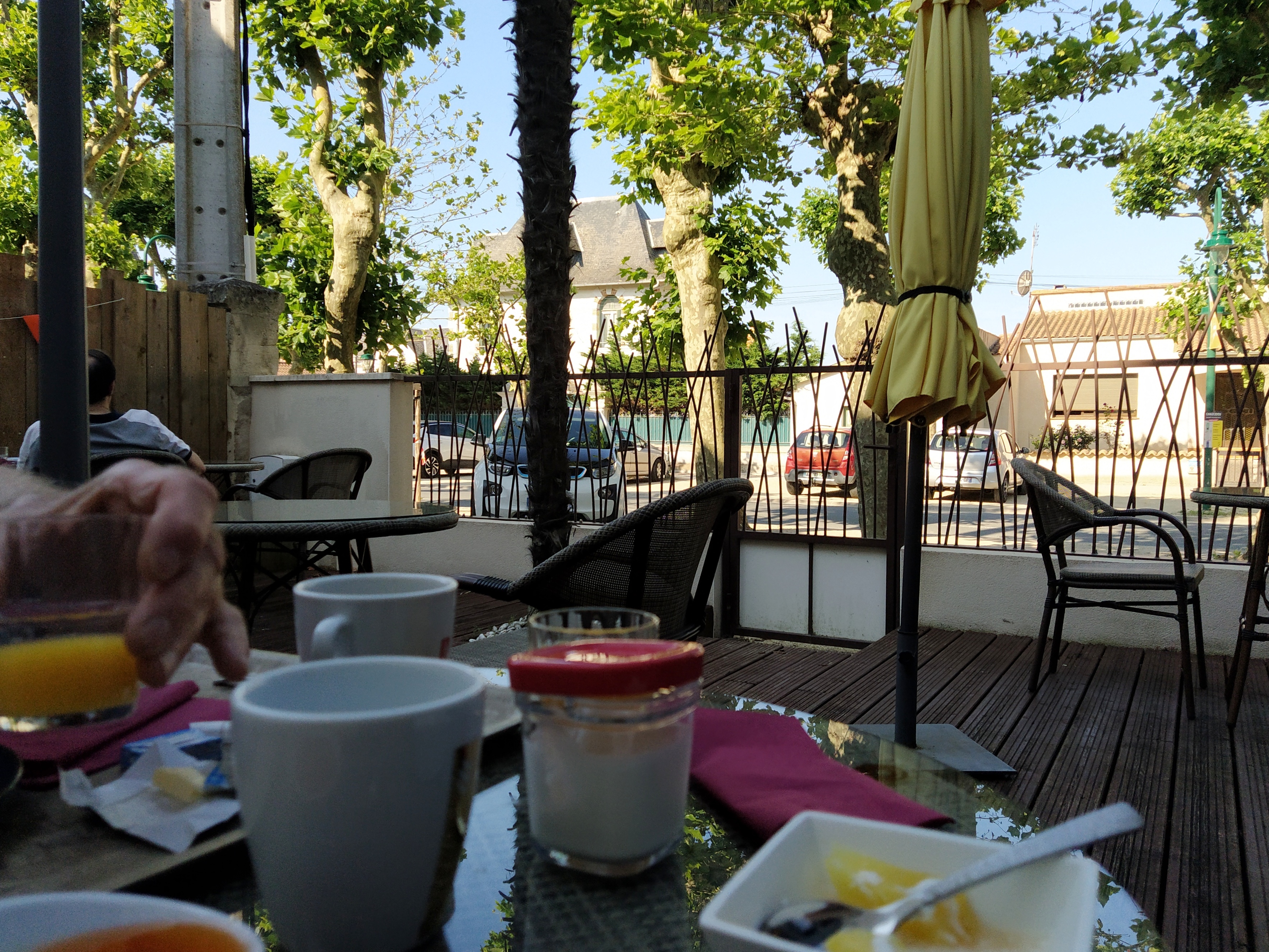 The next morning we took our breakfast trays out onto the front terrace. A charming young girl had shown us the buffet emphasizing the homemade products; three cakes, two jams and plain yoghurt. The yoghourt was delicious and I had it every morning on my fresh fruit. The apricot jam rivalled Bonne Maman. We passed on the cakes, they looked good but too much for breakfast.