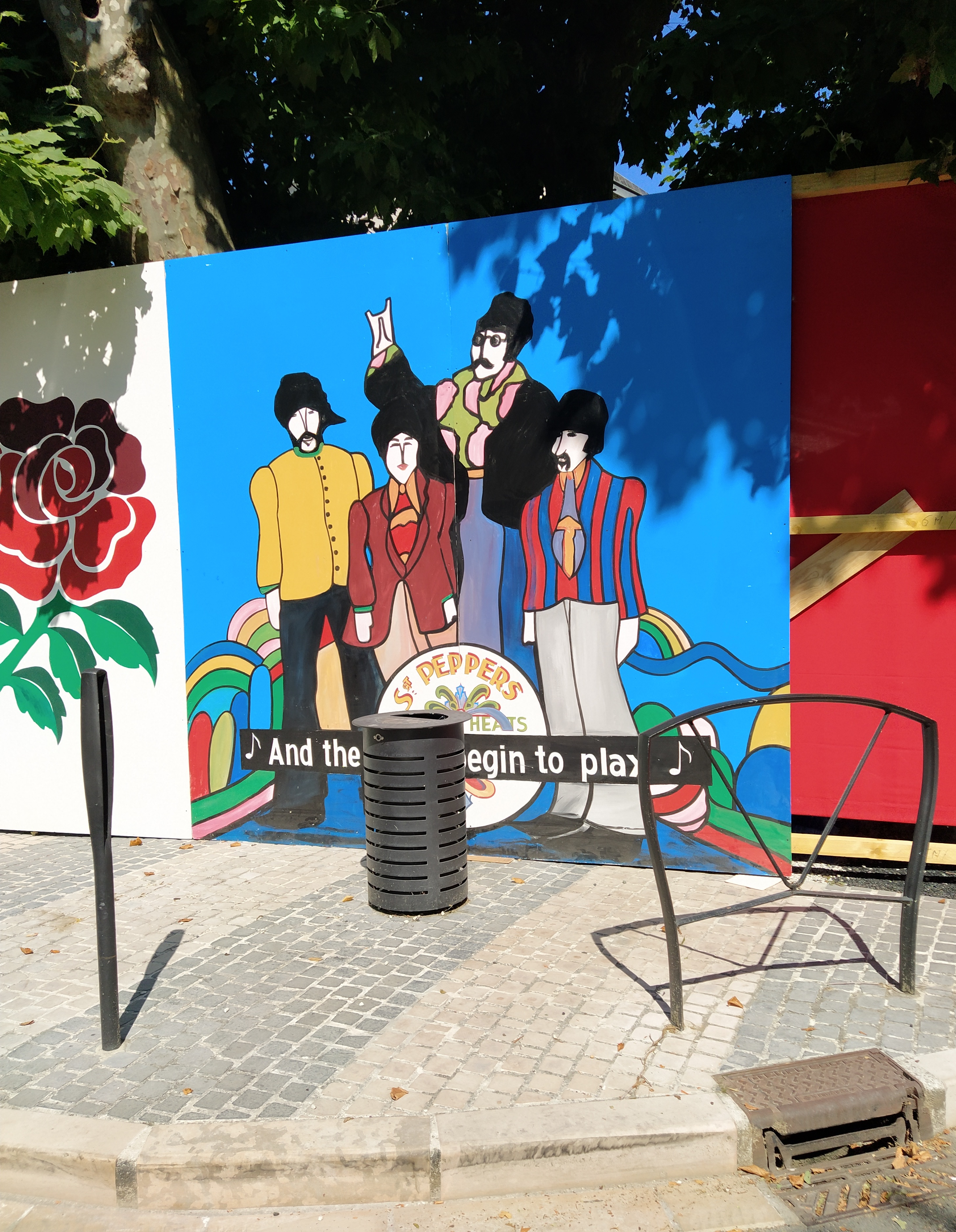 We had decided on a beach day but first a little explore of the town, especially the covered market. The main road was closed due to a fete taking place that following weekend. We were bemused by a large panel depicting the Beatles but discovered the town was twinned with Knebworth…
