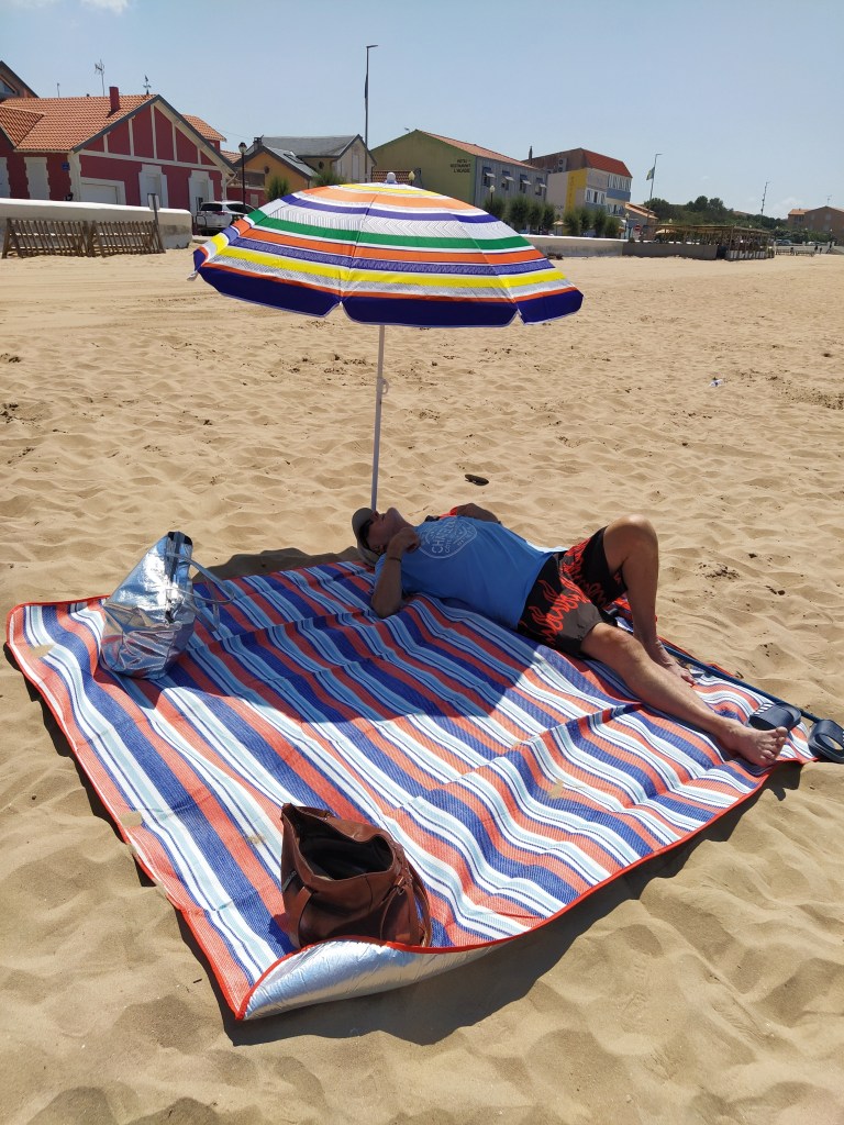 It was lovely…sun, sea (almost) and sand…lots of it. Apparently back in the 80s the beaches had been washed away and there was a huge operation to bring sand from Ile d’Oleron to replace it at Chatelaillon-Plage in order to prevent the town losing its seaside identity and vital economy.