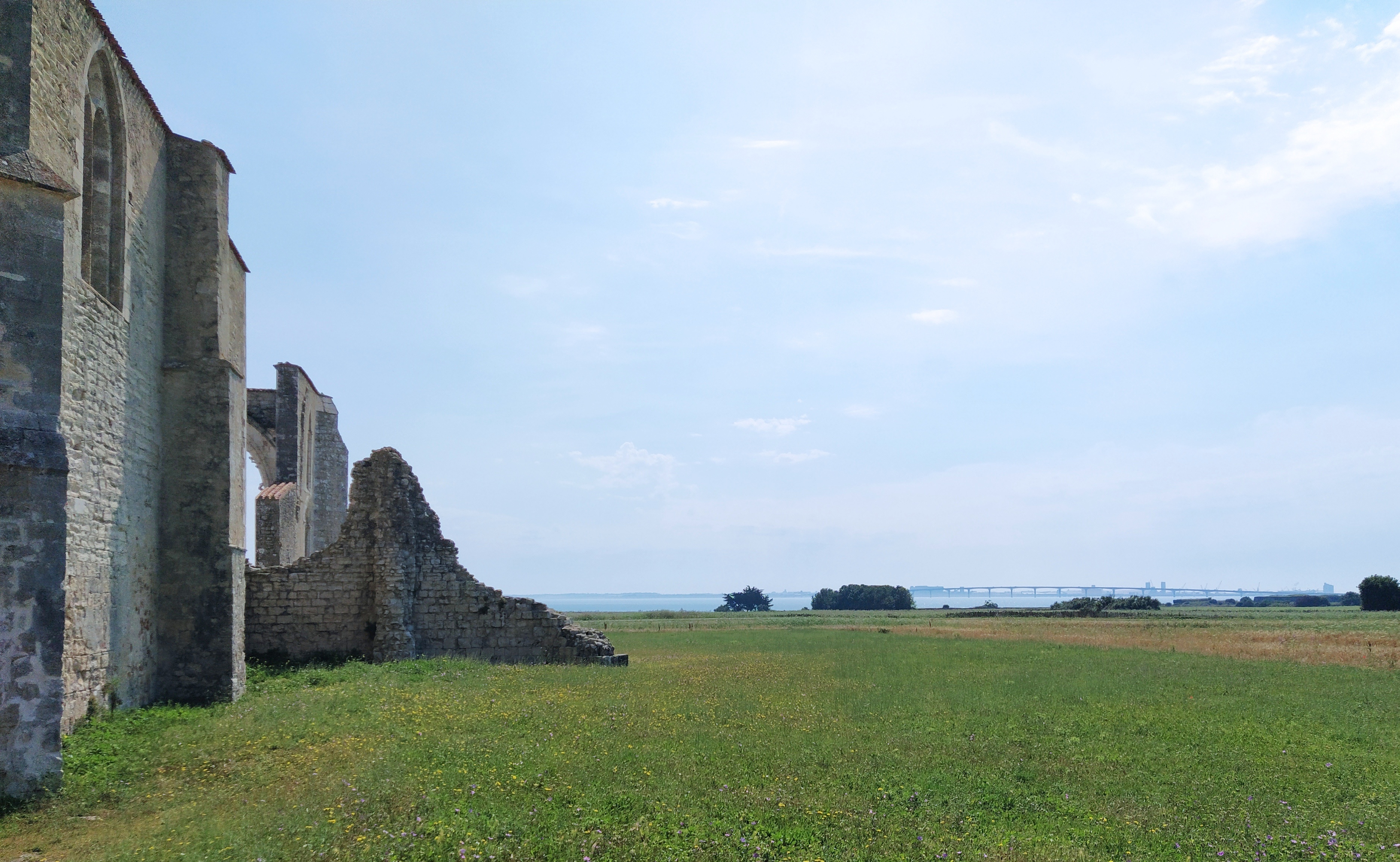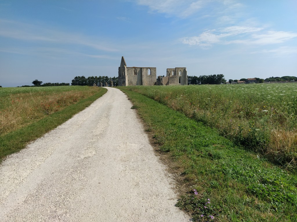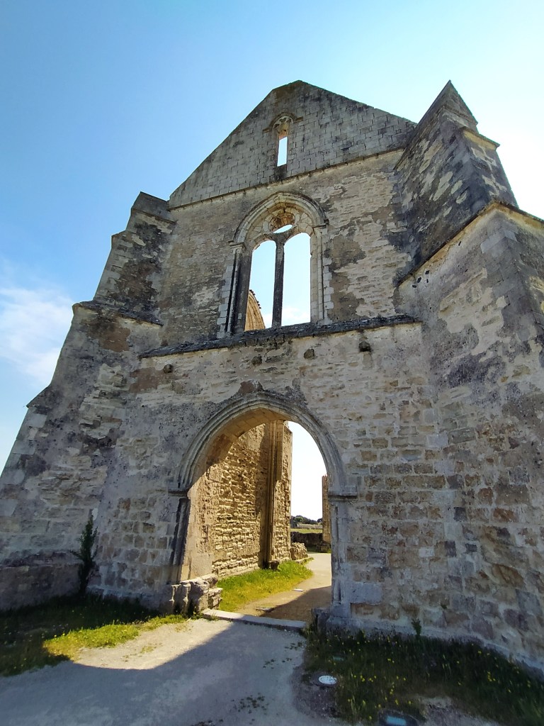 Our first stop was the 12th century Abbaye des Chateliers , surrounded by wild flower meadows full of poppies where skylarks sang. My first skylarks in years! Founded by Cistercian monks it lasted only until the 16th century when finally destroyed by the Huguenots during the wars of religion. It had previously suffered badly in the 15th century from partial demolition by the English during the siege of La Rochelle. But only invaded by tourists nowadays, most of them on bikes. As a driver you have to be wary of when the bicycle and its designated routes take precedence over the motorised vehicle!