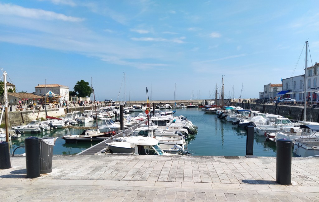 Next stop was La Flotte where I had a fight with the parking payment machine, as did several other drivers. Modern technology, pah! La Flotte is a plus beau village that my sister had stayed in and it really is very pretty and very busy but we found a table for our regular beer and cappuccino with a good view of the harbour. I even managed a quick shot minus passers-by.
