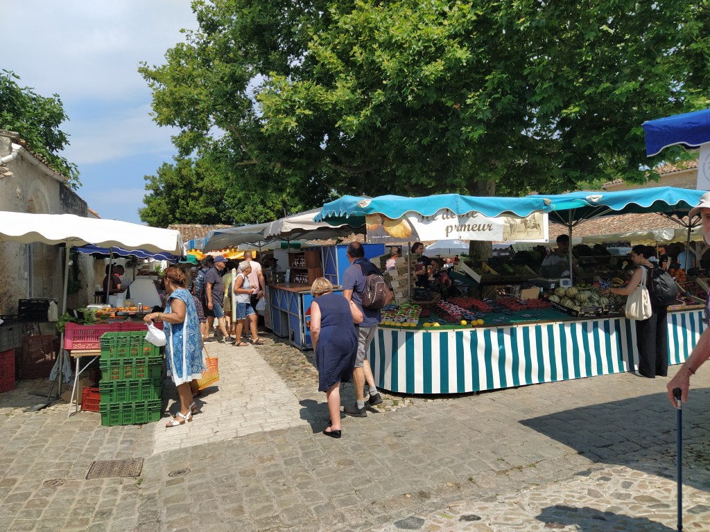 The village is very pretty with lots of expensive clothes shops, we noticed, as is so often the way with plus beau villages, they become full of bijou boutiques and artisan studios that close as soon as the holiday season is over. We were looking for the market and somewhere we could buy local wine. I had been enjoying a Chardonnay from Ile de Re at aperos time at the hotel. Market visited and wine found in the local Carrefour we returned to the car to continue exploring.