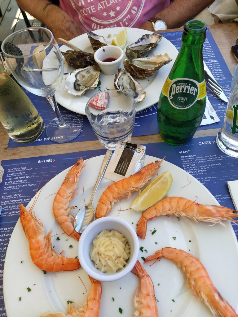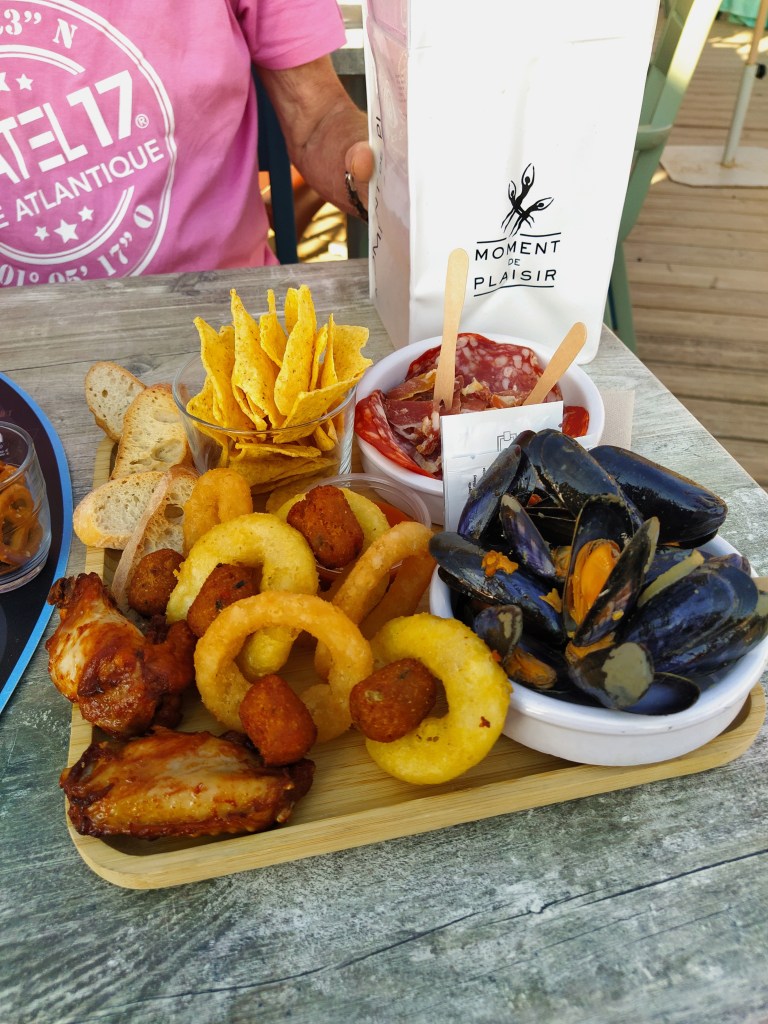After the by now obligatory aperos sur la terrace, himself enjoying a pastis made on Ile de Re, we went in search of tapas at a place on the beach.