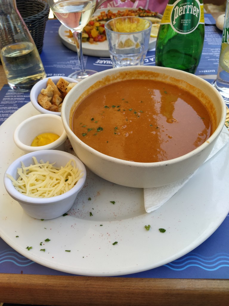 Of course, Mr McGregor chose oysters as his starter while I had crevettes. The good news was that the restaurant offered their fish soup, which I love, as either an entree or a main course so I was sorted!