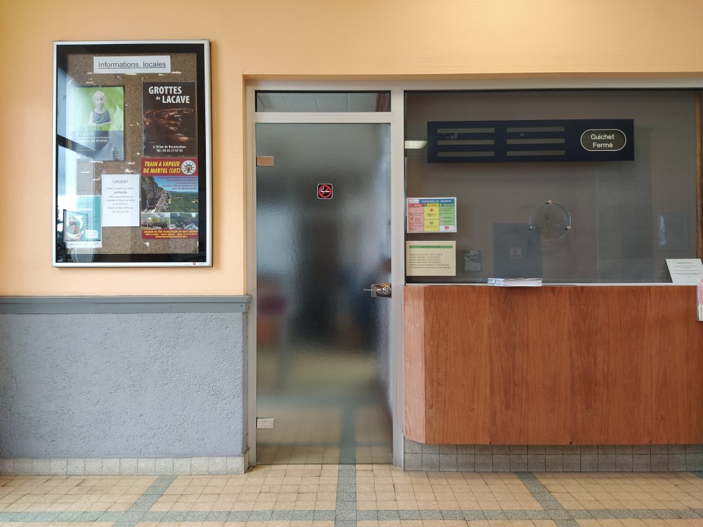 We were up and organised well before our friends arrived so there was a bit of a wait at the apparently deserted train station at Biars, our departure point. Both of our phone apps were saying the train was on time and it was.