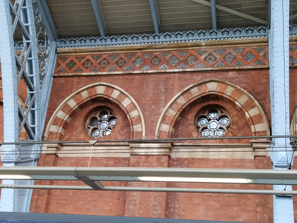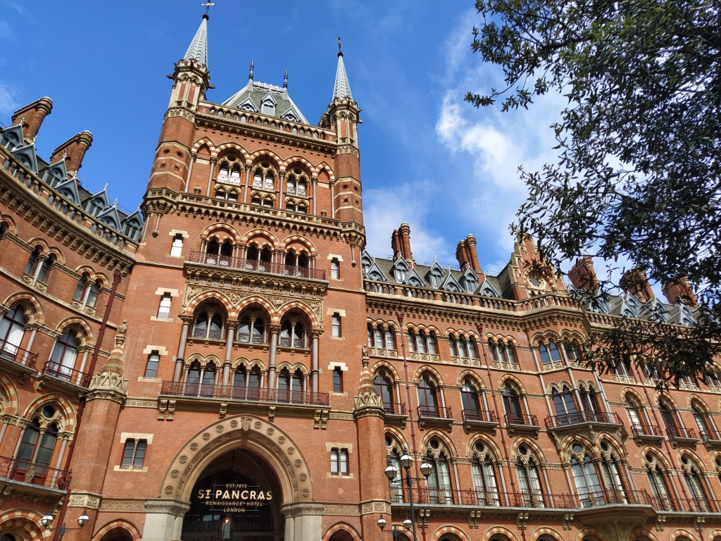 Our hotel. I’ve been telling anyone who asked we were in an hotel opposite the British library but when we presented ourselves at the reception I was firmly told we were in the wrong one! ‘Our’ hotel was the sister one three minutes walk away, this one was called St Pancras, ours Euston. So the stroll became a cross stomp as we set off to find it. No distance away, just annoyed with myself for a silly mistake.