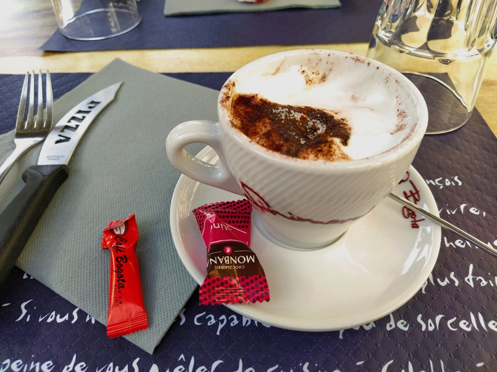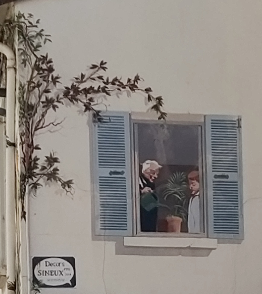 We were beginning to notice how warm the day had turned while we’d been indoors and were glad to find some shade inside the doorway to the closed musee du Papier. I’d forgotten it shut for lunch!
