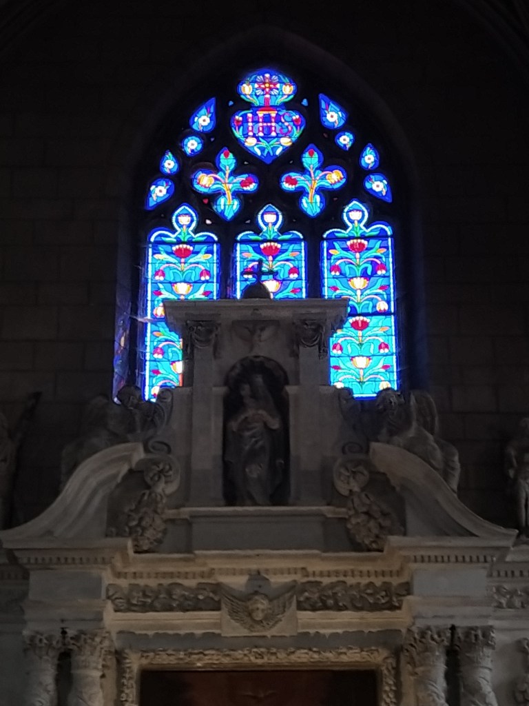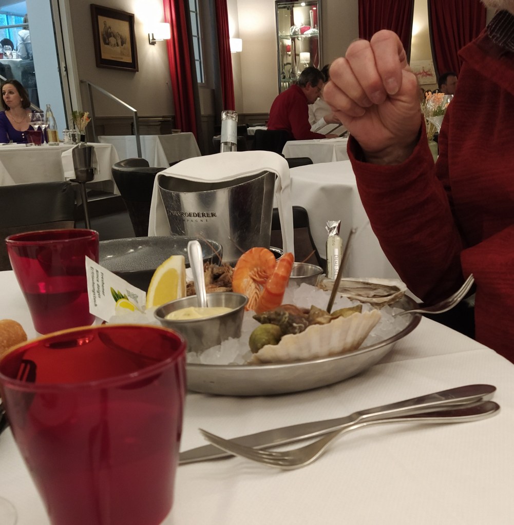 We tore ourselves away, promising we’d be back at some future time, and went in search of lunch. The musee cafe was closed but there were dispensing machines in the entrance hall. There then followed a Peacock pantomime as we attempted to get coffee with sugar from one and sandwiches from the other. Eventual success with the coffee but the sandwiches needed the intervention of the burly chap behind the bookshop counter who threw his weight against the machine until my two sandwiches were dislodged from their position above the exit bin. I had had the bright idea that buying a second one would mean it dropped onto the marooned one….wrong!