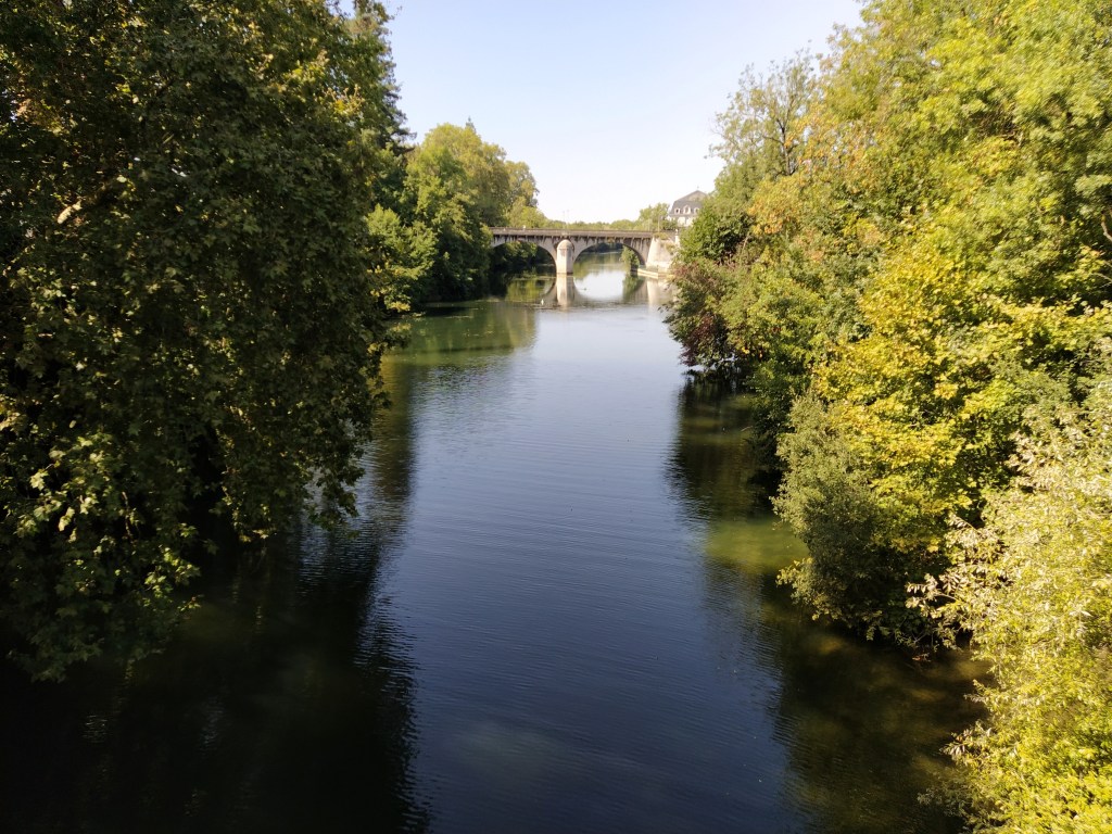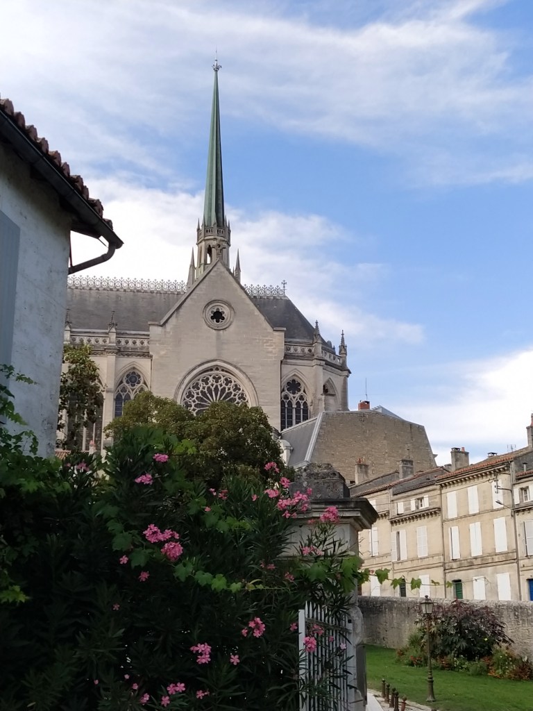 Leaving involved the same lift and locked door saga in reverse but finally we were back outside and recrossing the Charente, past the interesting statue with his flyaway coat tails.