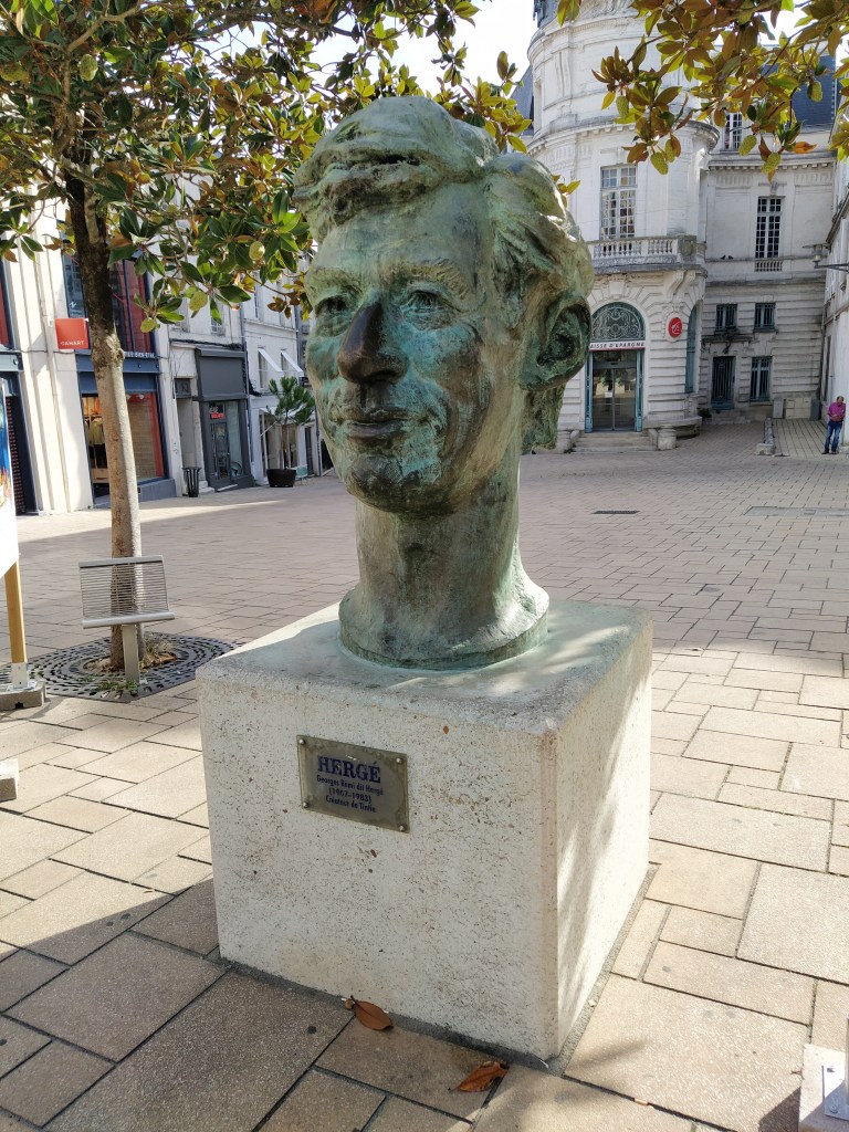 We were hoping too for a physically easier day. With a handy car park and a flat concourse leading to the museum entrance, the poorly one wouldn’t be shaken to bits and pushing him would be a doddle, fingers crossed. But firstly, I had to pop up to the centre for a few bits. Arriving by Herge’s bust I discovered a few stalls, one of them selling second hand books. Of course, I had to buy a Tintin, for old times sake and given where we were.