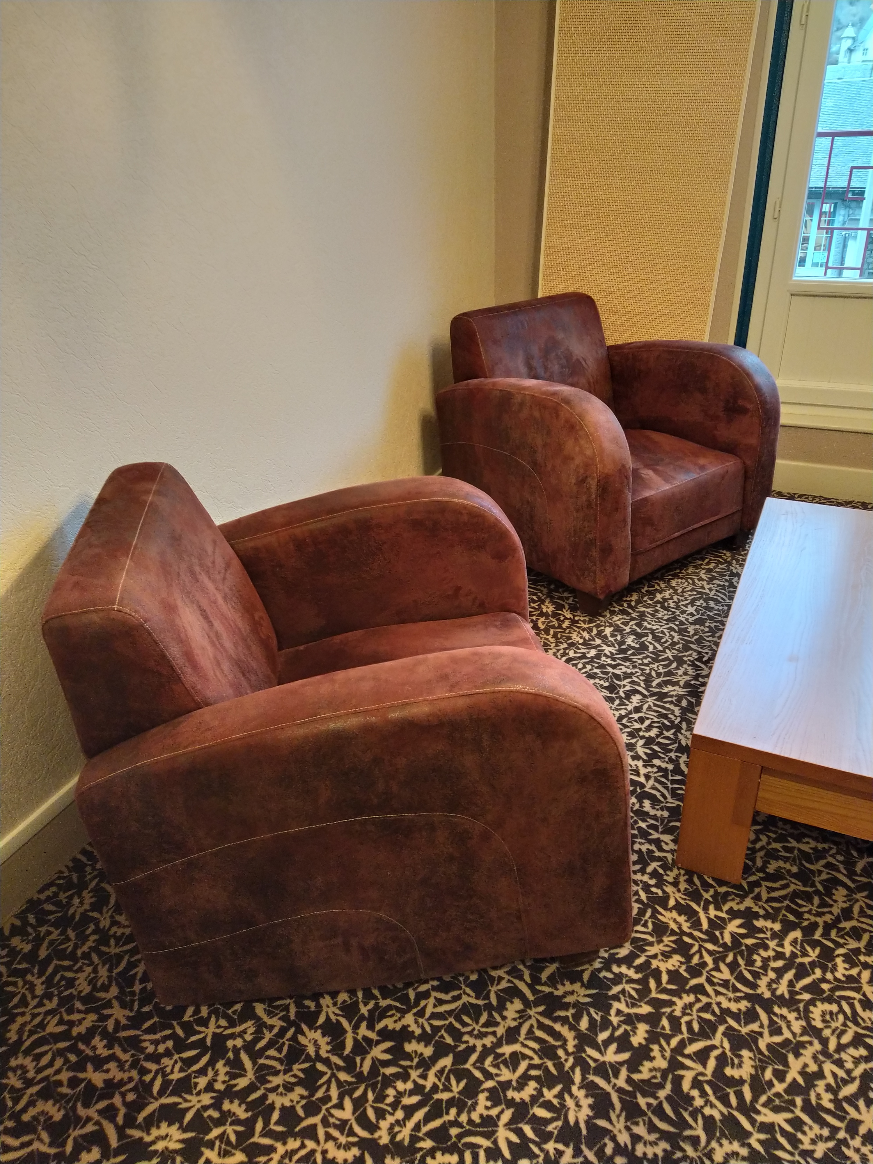 The two ladies in charge were very concerned that we benefit from all that the musee had to offer so insisted we ring up to them via the intercom when we wanted to use the lift to the first floor. This involved us leaving the building and waiting at a locked door further along, being let into a pitch dark room and then being led to a lift by the light of a mobile phone from which we emerged into a gloomy and very hot art gallery on the first floor. I went through to pay our entrance fee but discovered there was no charge due to our disabled status. A magnet and postcard were purchased out of guilt for all the fuss. And the fact that we were suffocating from heat and disinterested in the limited art on display, a retrospective of past exhibitors so a tad random.