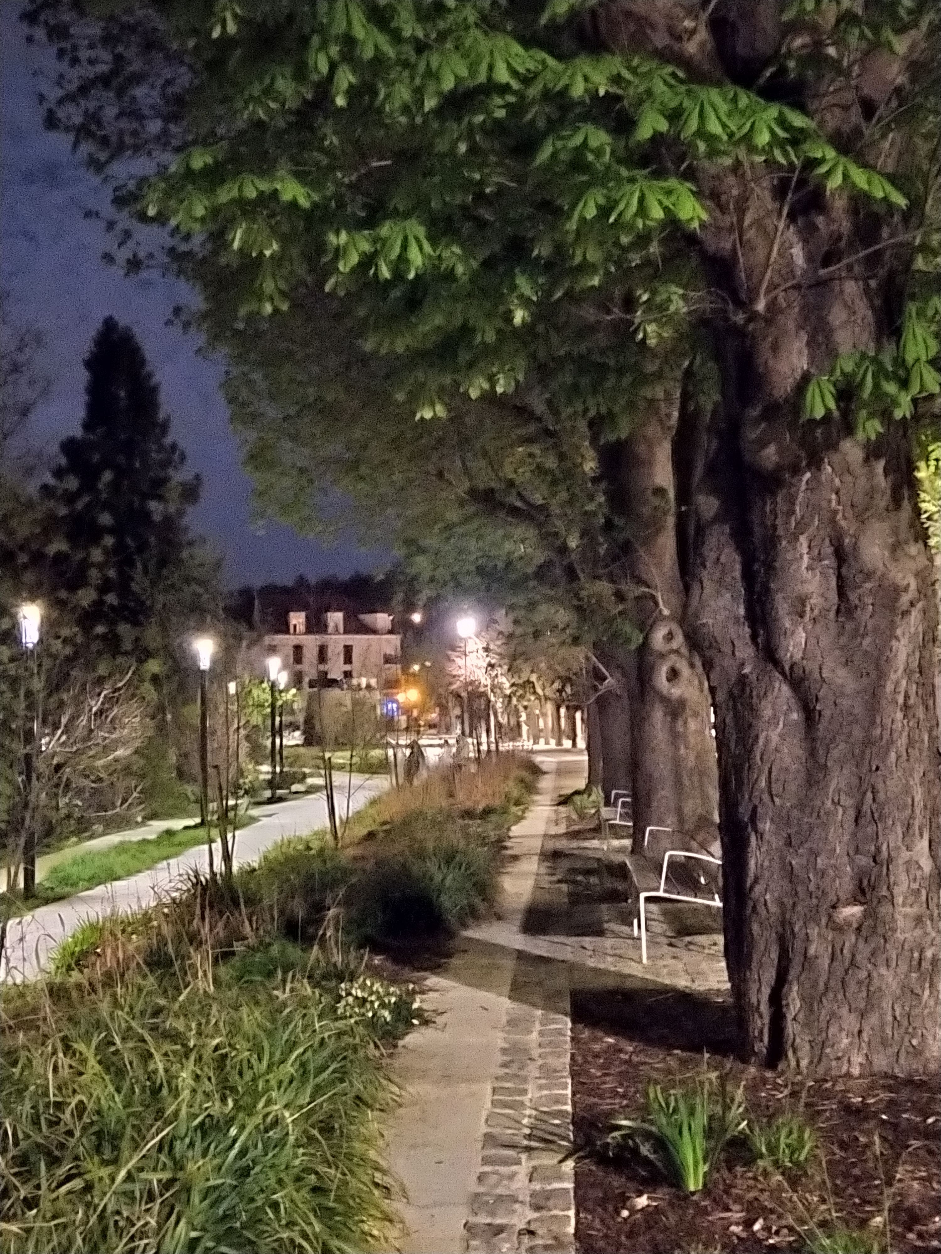 Off at last, ignoring the GPS who wanted to lose us in yesterday’s alleyways, I found our way down to the river and across to the musee. As we approached the entrance there were chairs being set out on the huge concourse plus a sound system and buvette. Something was happening later, it would appear.