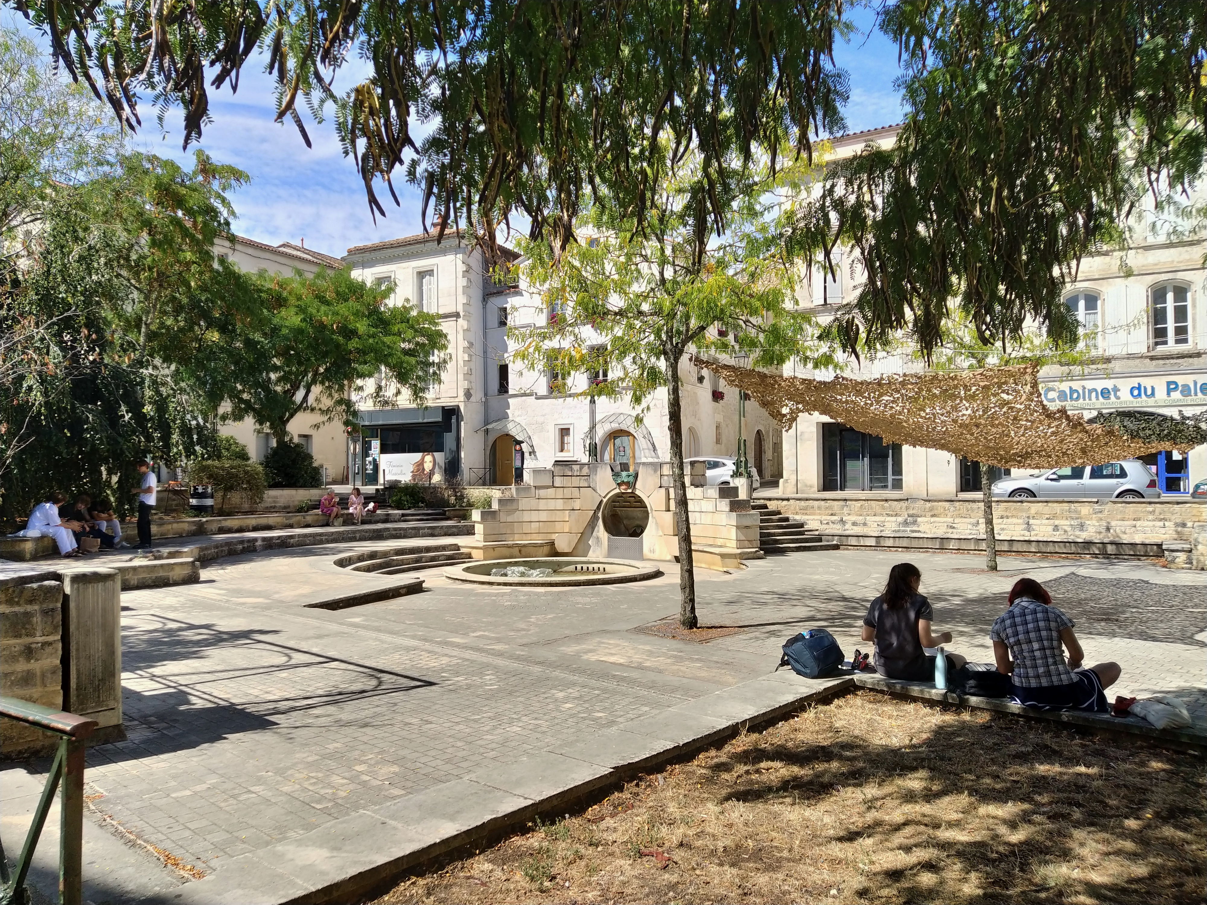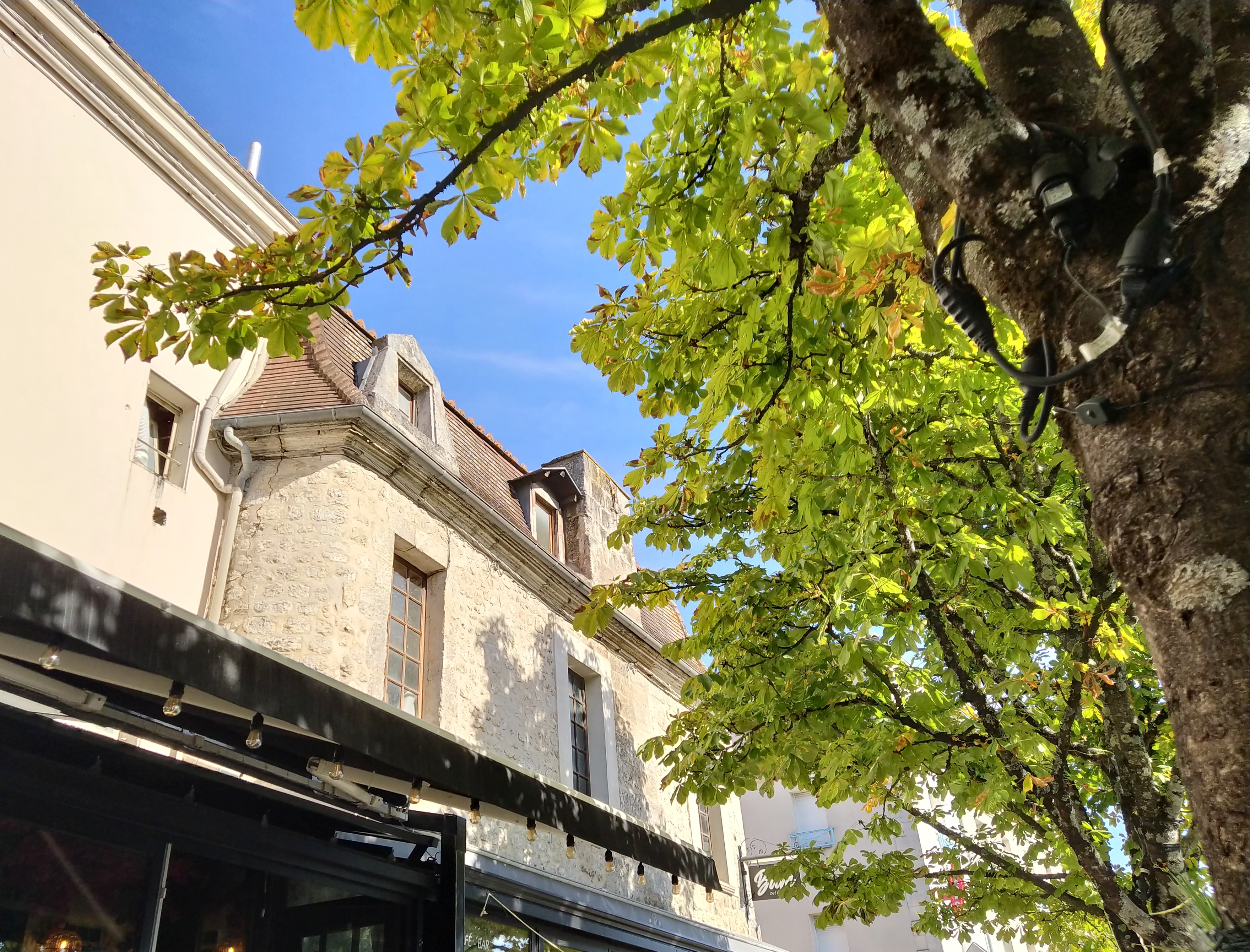 We were beginning to notice how warm the day had turned while we’d been indoors and were glad to find some shade inside the doorway to the closed musee du Papier. I’d forgotten it shut for lunch!