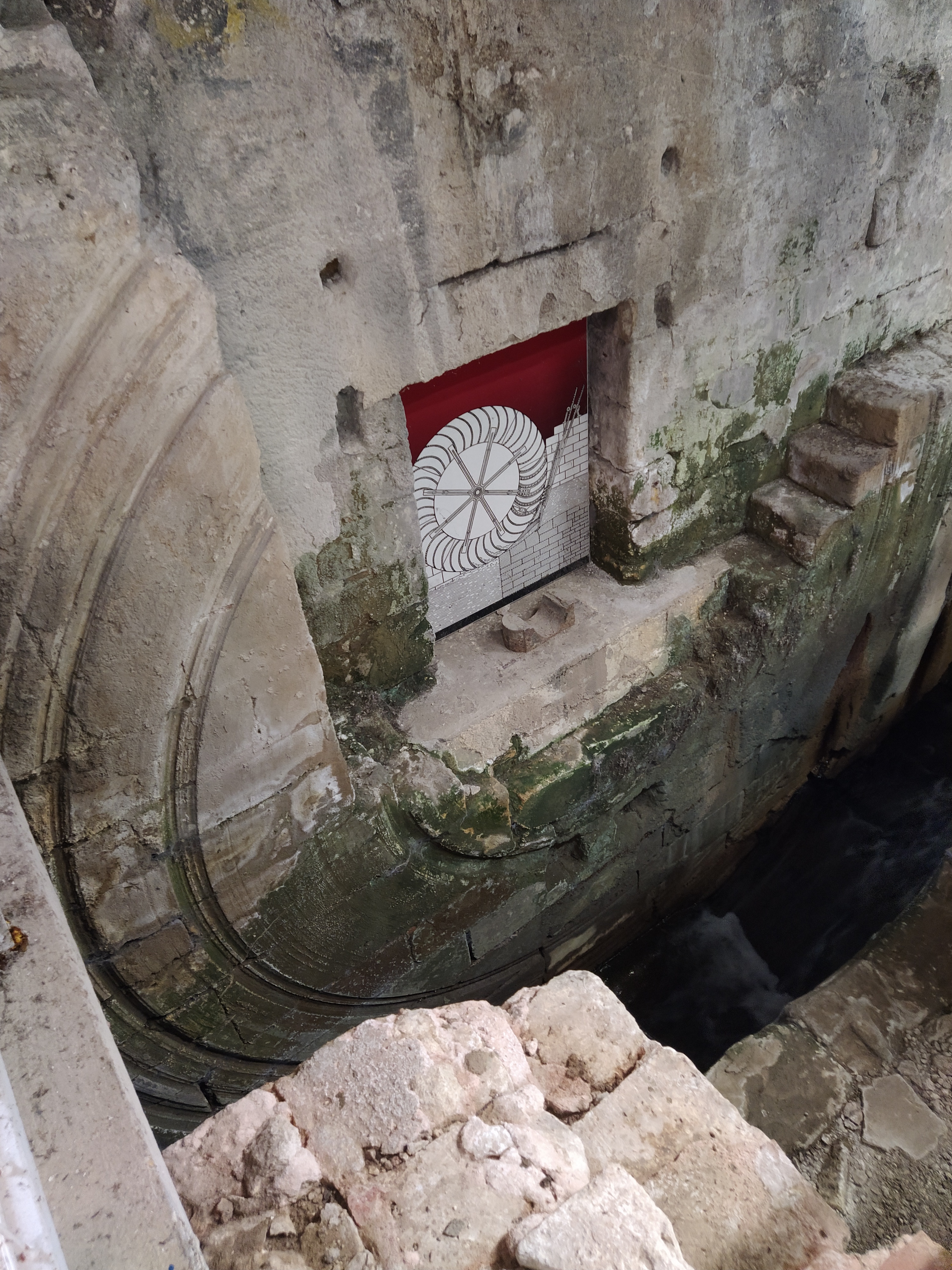 It seemed its main claim to fame was the manufacture of cigarette papers. We enjoyed poking about the old building which was open to the air but cool. There were photographs of the workers and I commented it must have been deafening for them given the present volume of noise coming from the water thundering through the sluice gates below us.