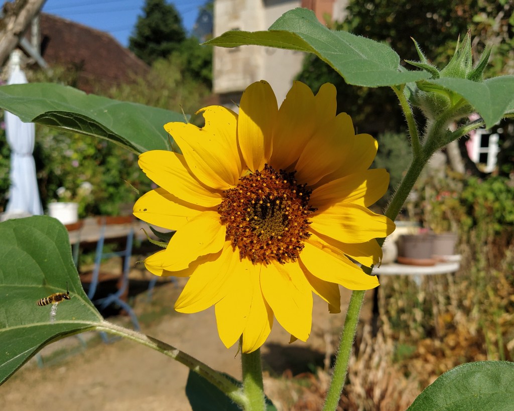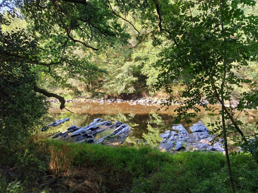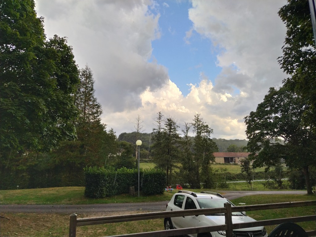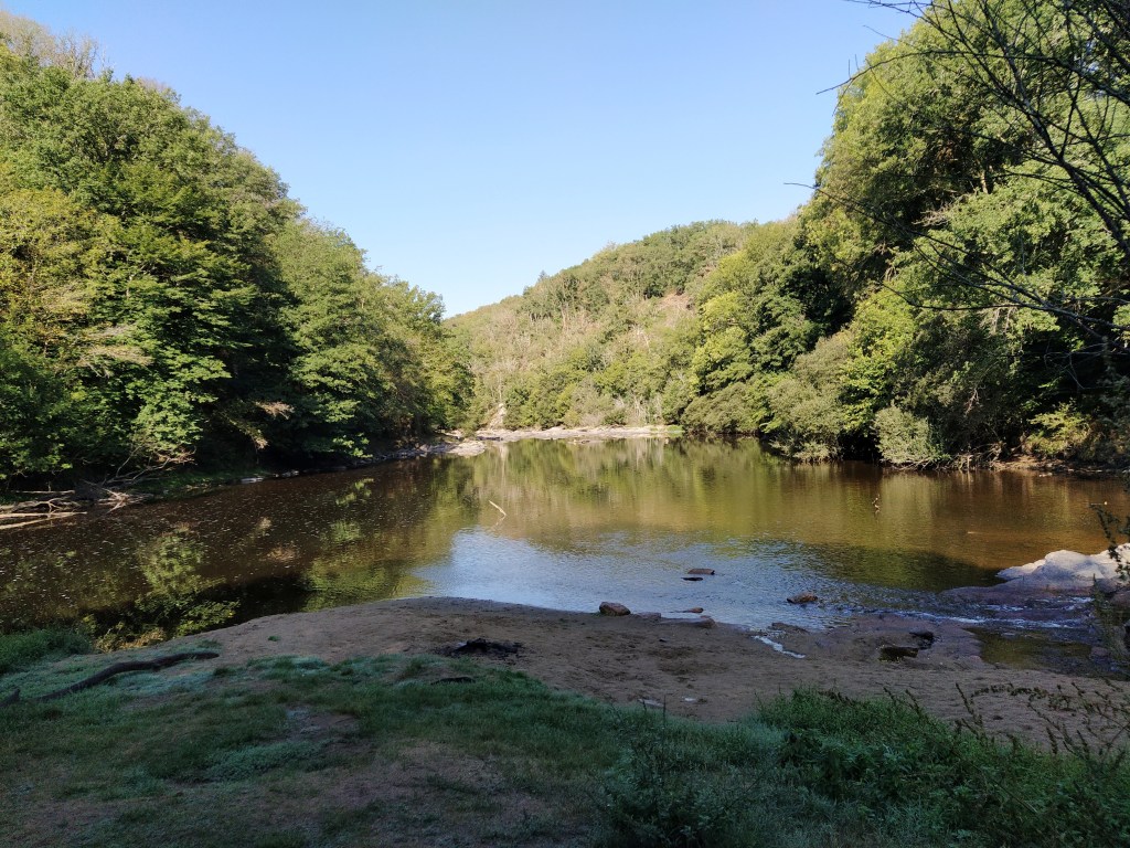 After a lovely july and august busy with family, I approached the impending chalet stay with some trepidation. After a hot, dry summer the meteo was promising a week of dreadful weather plus the mairie website had a not very good photo of the chalets and I was anxious that I had booked an elderly and maybe an over used and tired holiday home. I needn’t have worried. After our gps did its usual ‘all round the houses by goat track’ approach we descended a hill to the Creuse with the handy auberge on our left and the campsite just beyond. The chalet was on the top of a rise with the river behind and below it. Great, not too many mozzies and only a small risk of flood if those storms arrived. The campsite rolled gently away from our veranda with a view of a small valley. A dried out stream ran from left to right along the bottom of the slope.