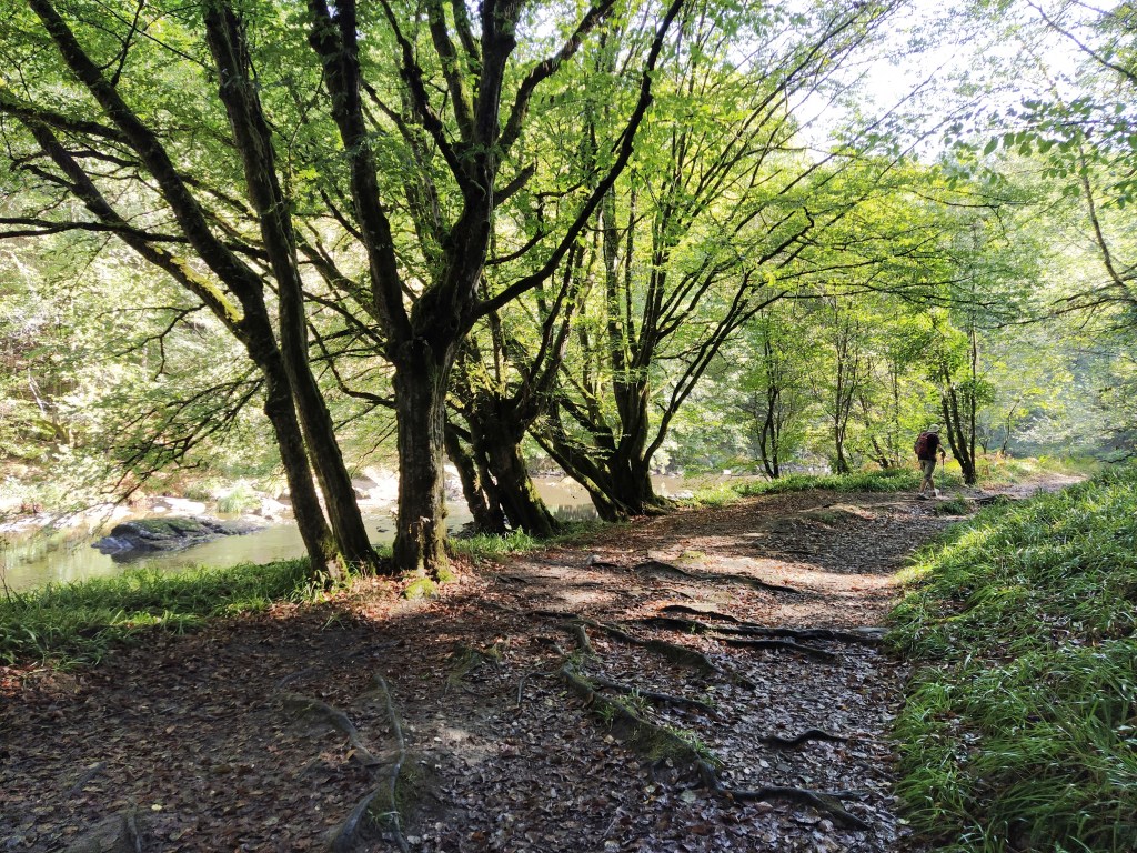 After taking the obligatory photos we wondered where the path continued and where that metal bridge might be. A couple with a dog came along from the direction of the petit Creuse. In French, I asked how far it was to the bridge. Taking the hesitant reply as a clue, I asked if they were English. They were, owners of that UK car we’d parked next to, and they proceeded to give us directions for the rest of the walk. We didn’t swap names so I shall have to say a big thank you to them here as it was a beautiful walk which we only attempted due to their helpful instructions.