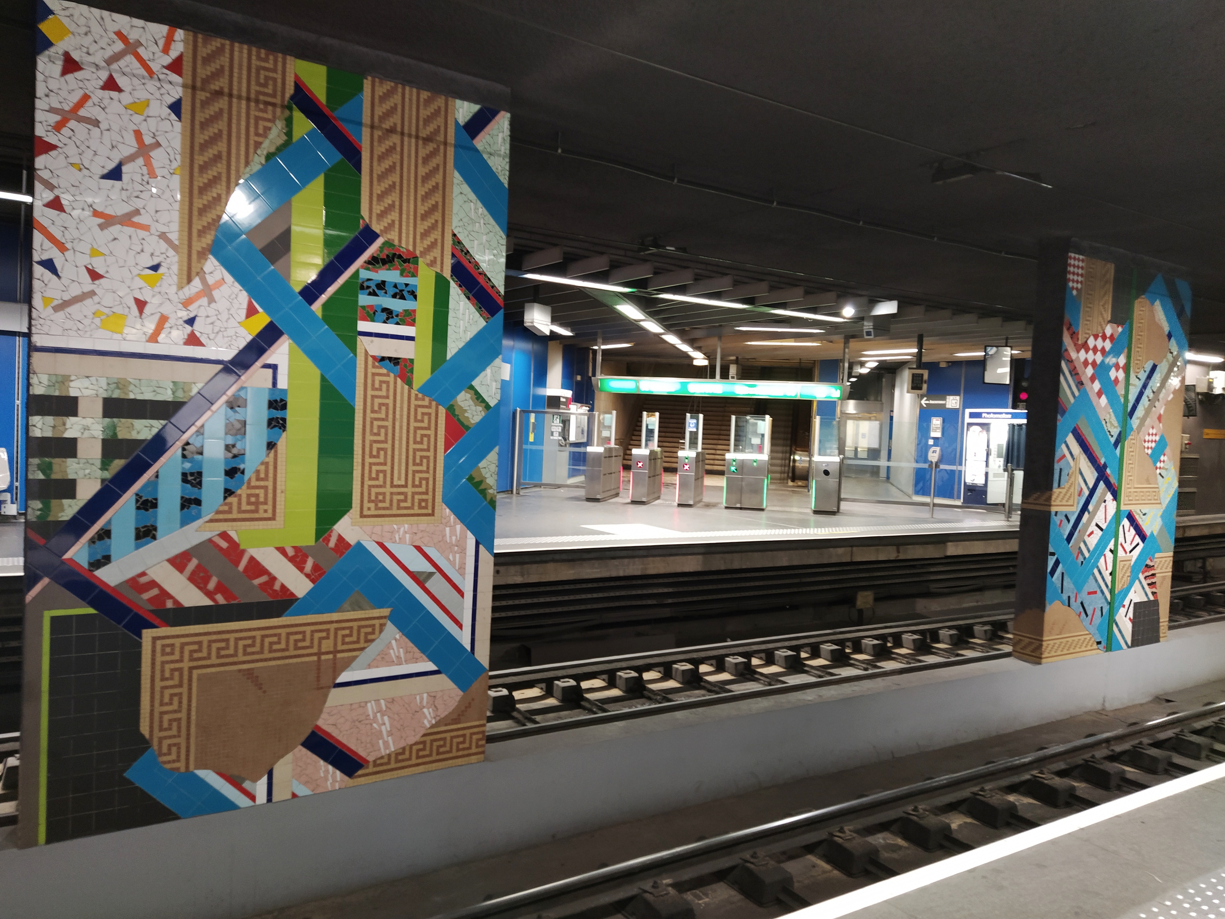As the path wound into the trees we came across the first of the Monet panels I had read about online. So we were in the right place after all.