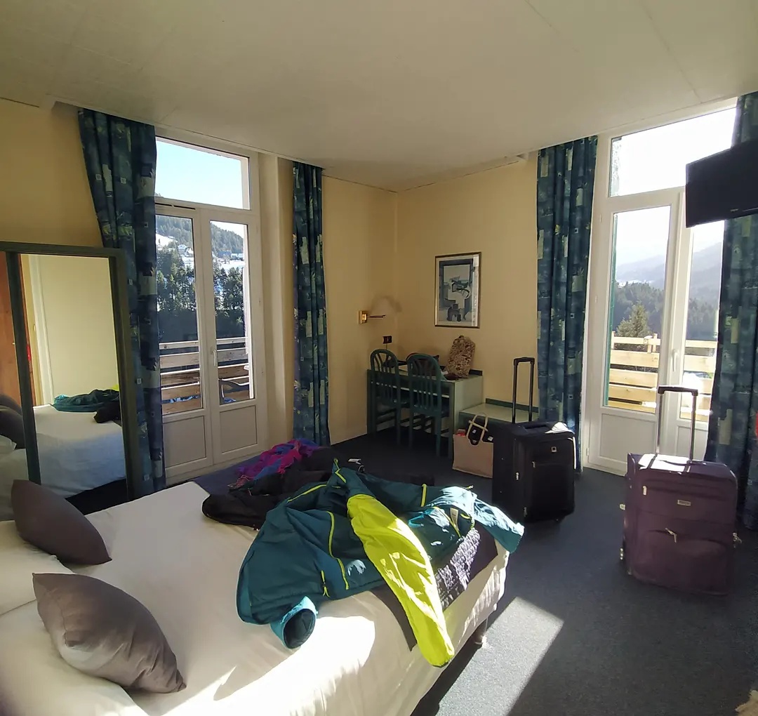 The cheerful ‘guardienne’ soon arrived and let us in. The chalet was bright and clean and very well equipped. So breathe….