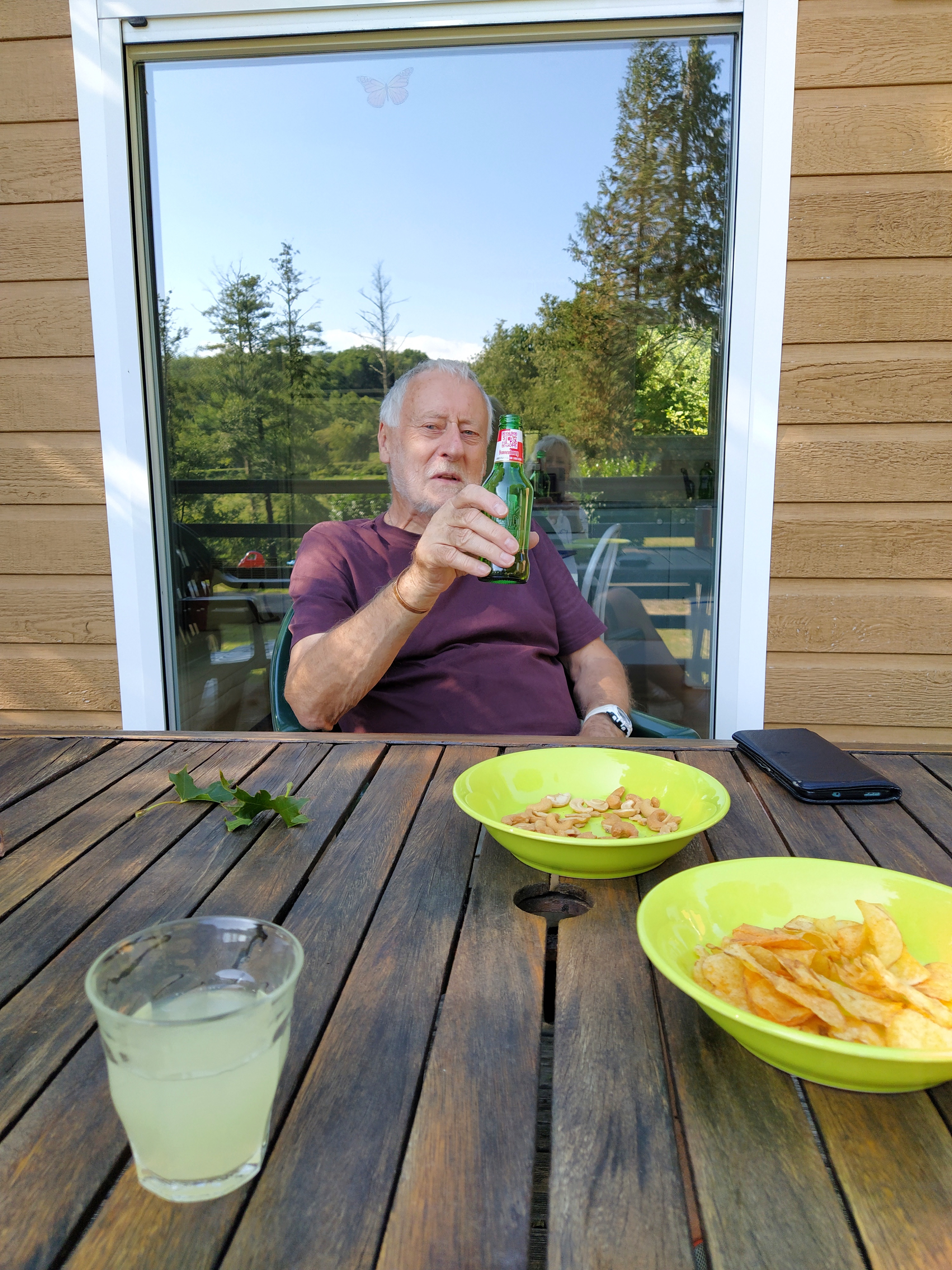 Across the Creuse and then drinks in the garden of the auberge. We’d eaten well there the night before and I had loved their fish and chips, a rare treat in France. Mr McGregor had taken a liking to one of their beers too. 😊