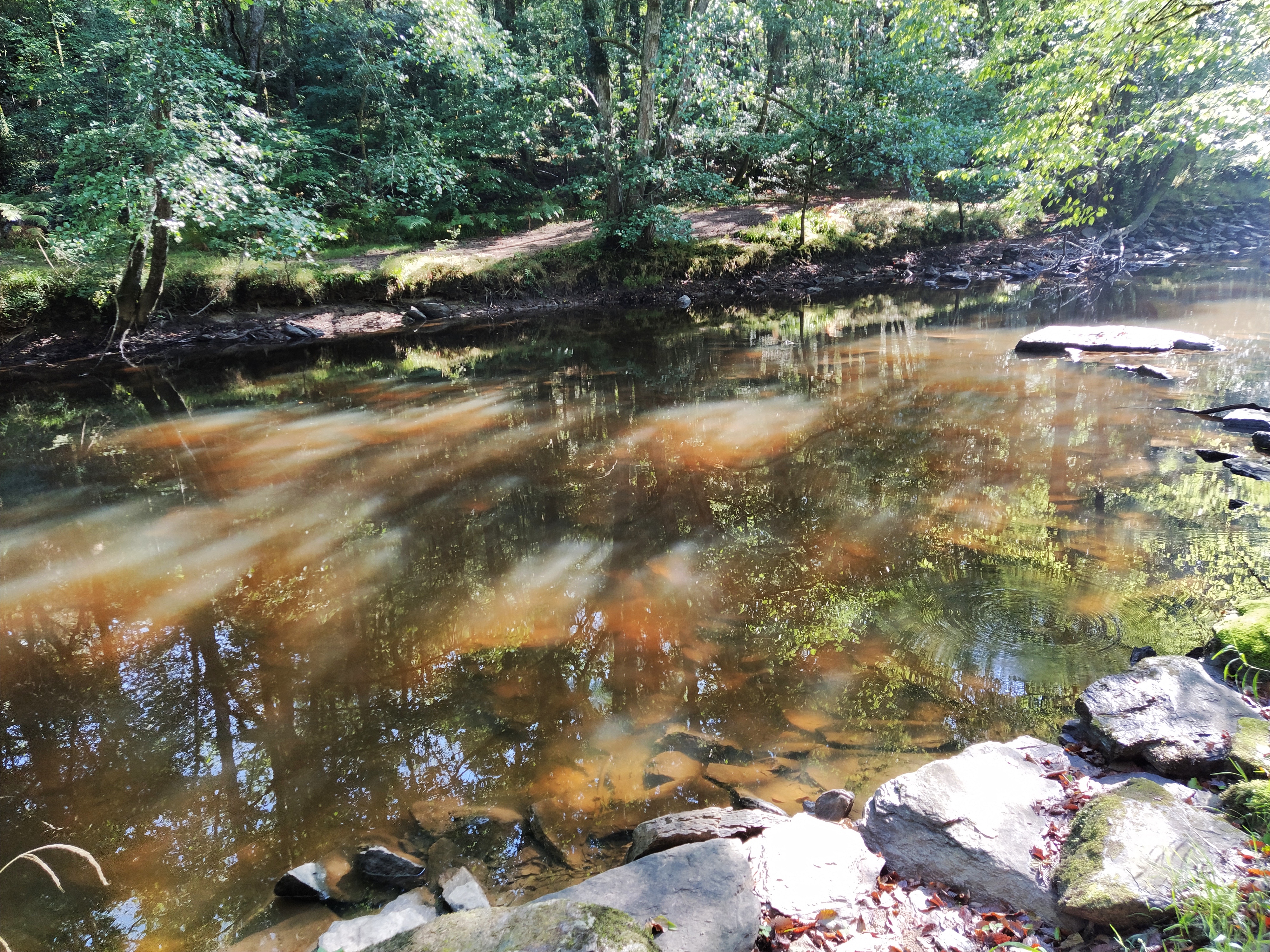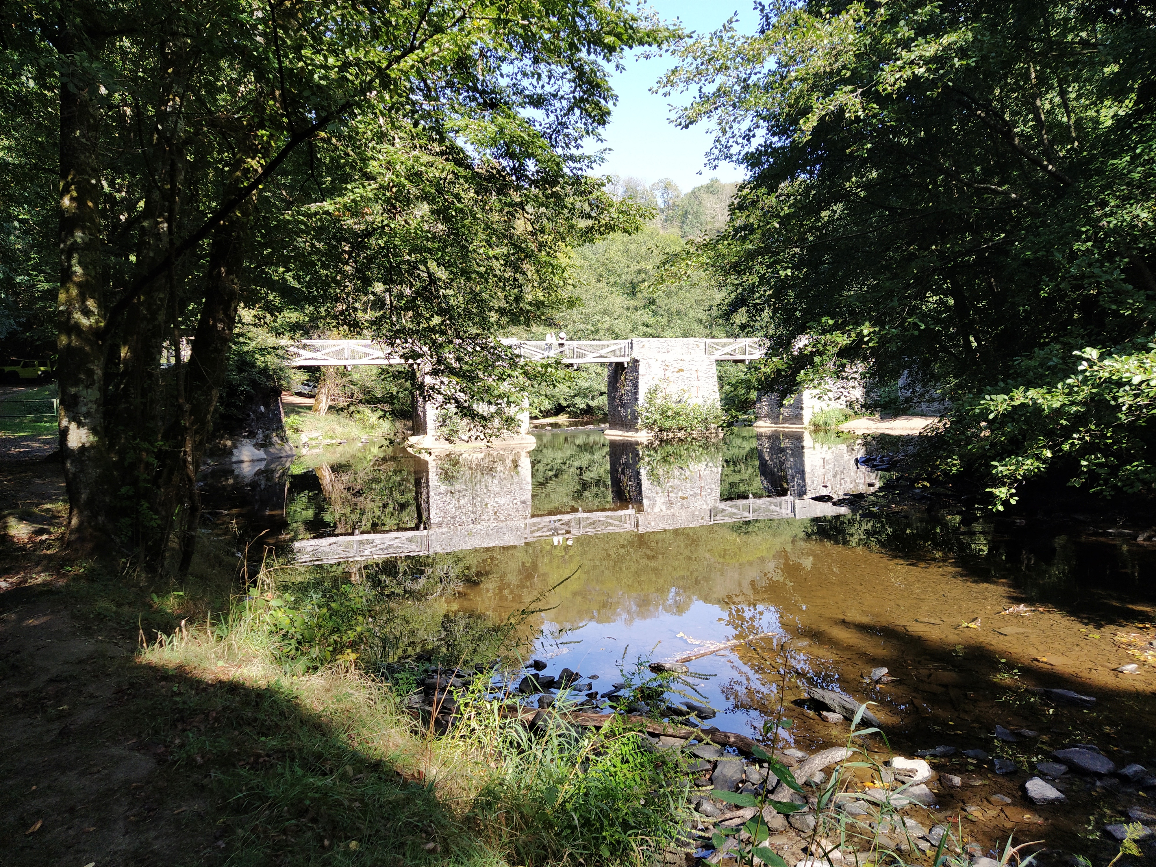 After taking the obligatory photos we wondered where the path continued and where that metal bridge might be. A couple with a dog came along from the direction of the petit Creuse. In French, I asked how far it was to the bridge. Taking the hesitant reply as a clue, I asked if they were English. They were, owners of that UK car we’d parked next to, and they proceeded to give us directions for the rest of the walk. We didn’t swap names so I shall have to say a big thank you to them here as it was a beautiful walk which we only attempted due to their helpful instructions.