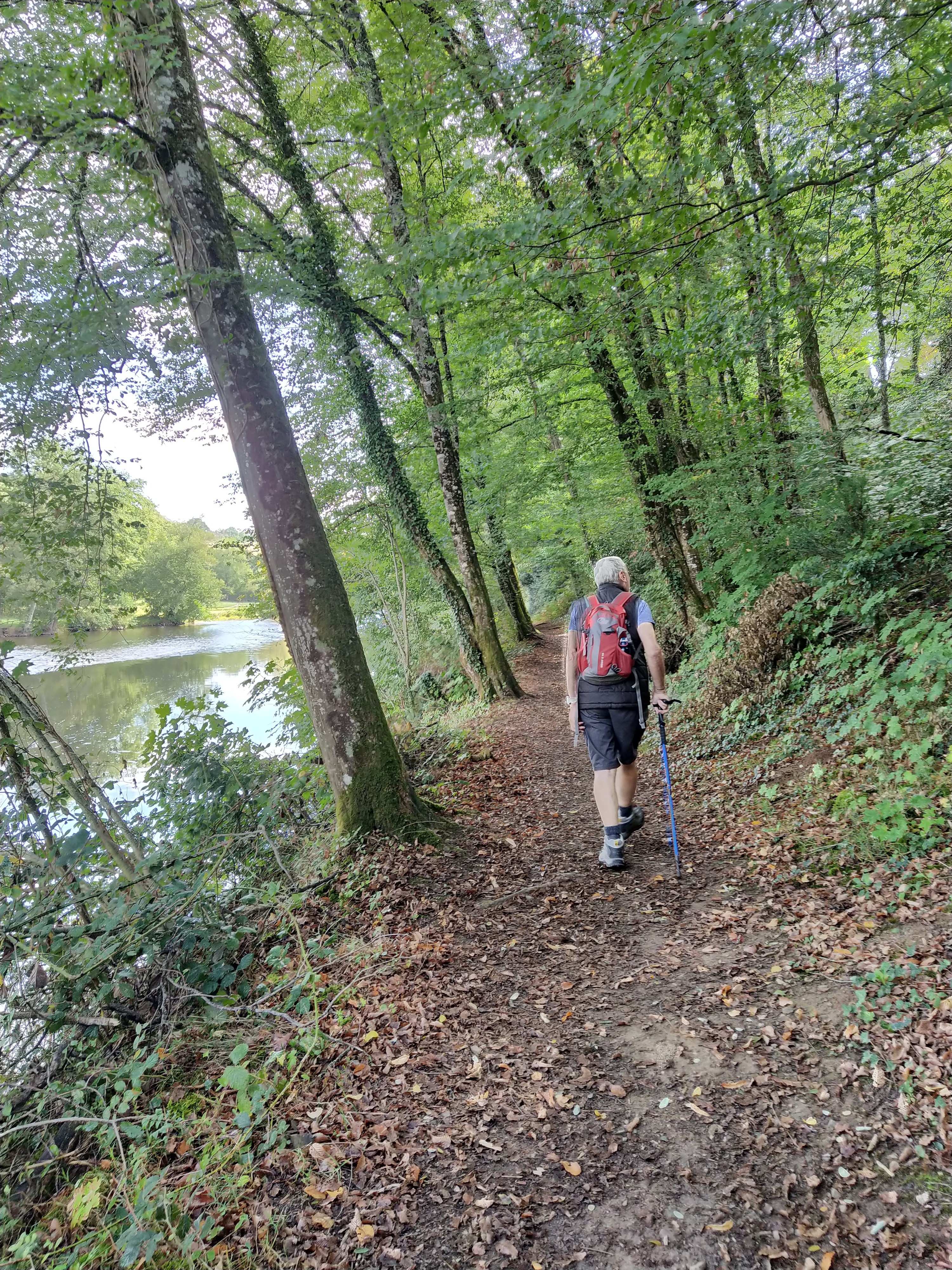 On Thursday morning, after a wet night, the sun came out and the meteo said it would stay out until storms moved in around lunchtime. Keen for some exercise we stuffed raincoats in our backpacks and decided to do part of a ‘boucle’ upstream along the riverbank and hope to get back before the rain.
