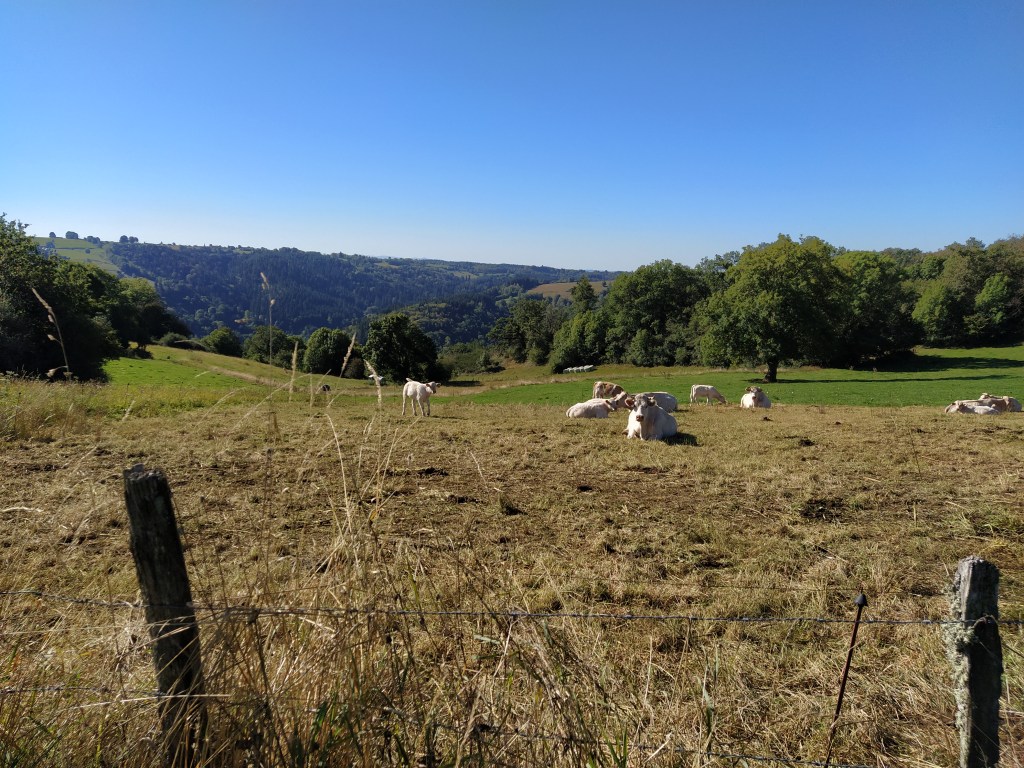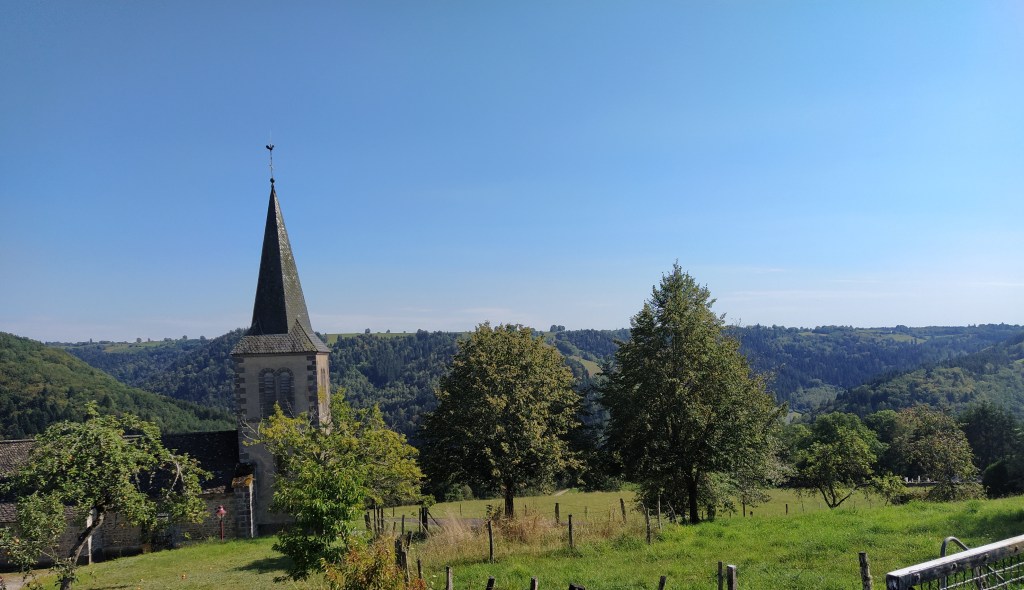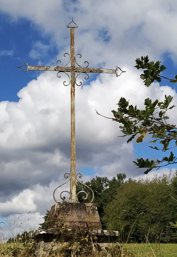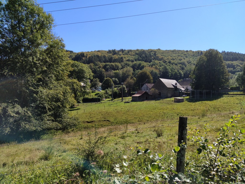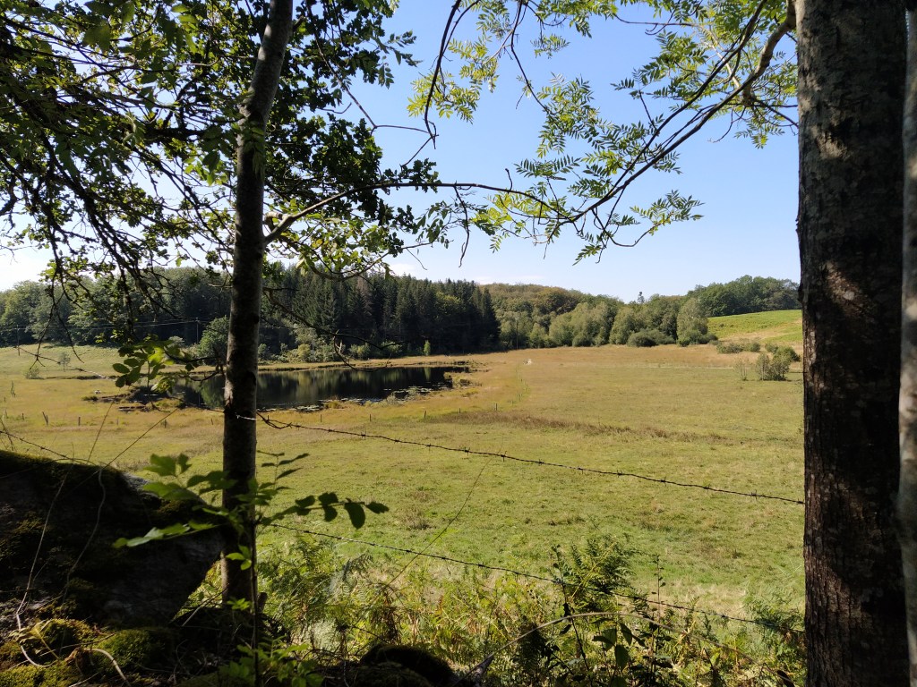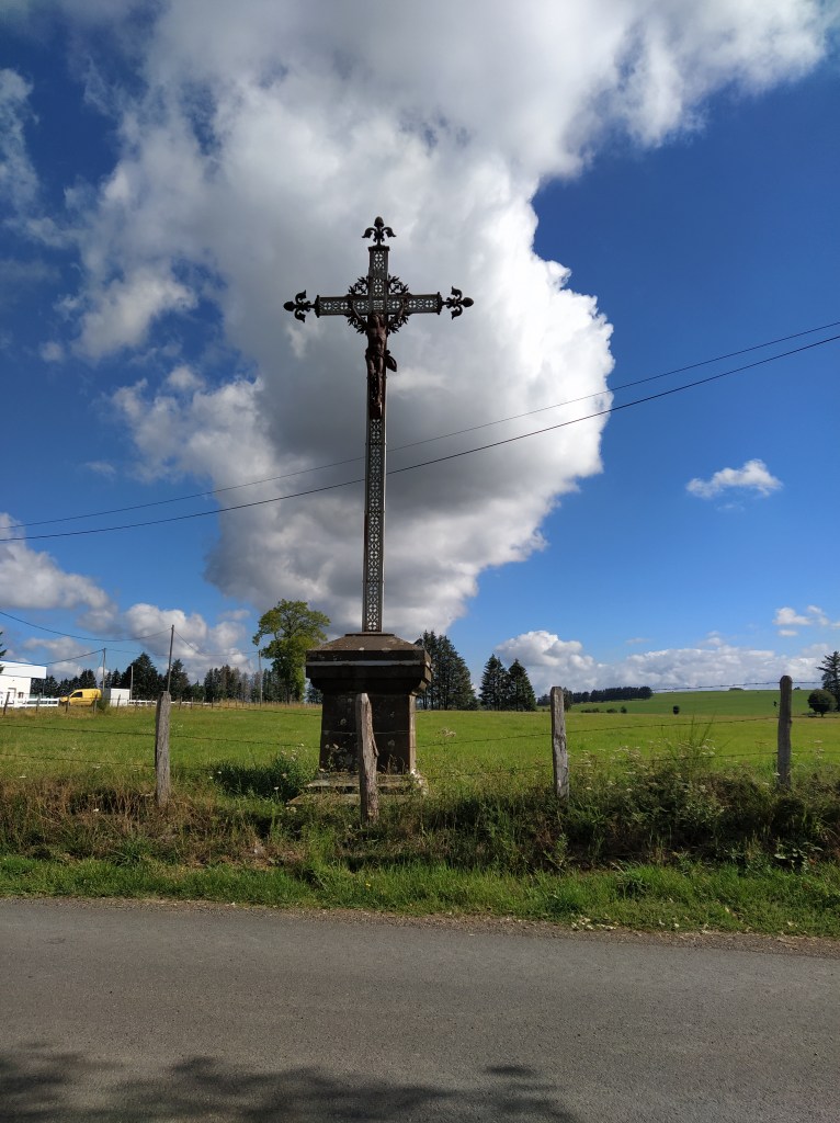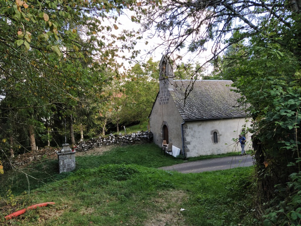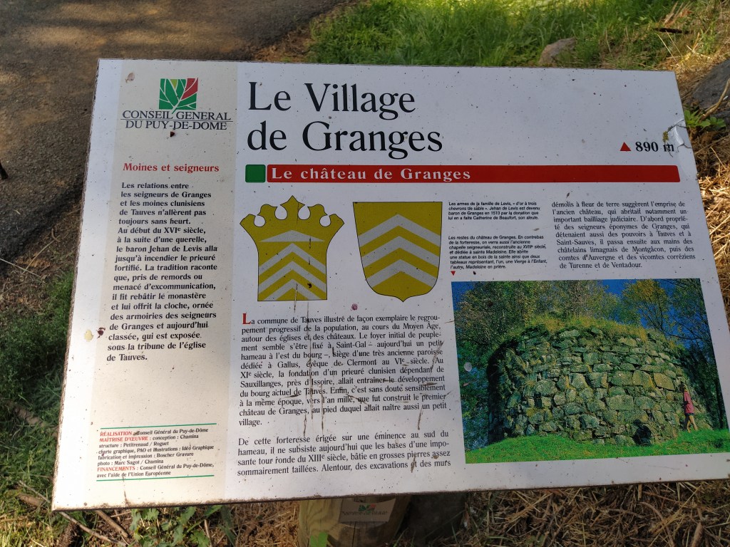 In my file I had a walk called ‘le chapelle de Granges’ which started from Tauves and made its way up to the plateau, across the main road and then wound around a few villages before arriving back at the start. 9.2 km. Far too long a walk for Friday but the mention of a medieval chapel and the vestiges of its accompanying chateau sparked my interest. Himself grunted assent so it was back to the starting point of the plateau walk opposite the cheese factory where we could pick up the track to Granges and be able to park easily.