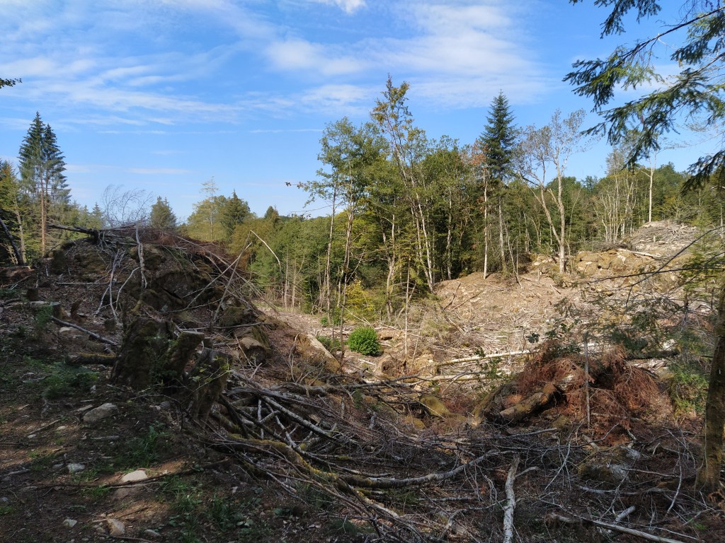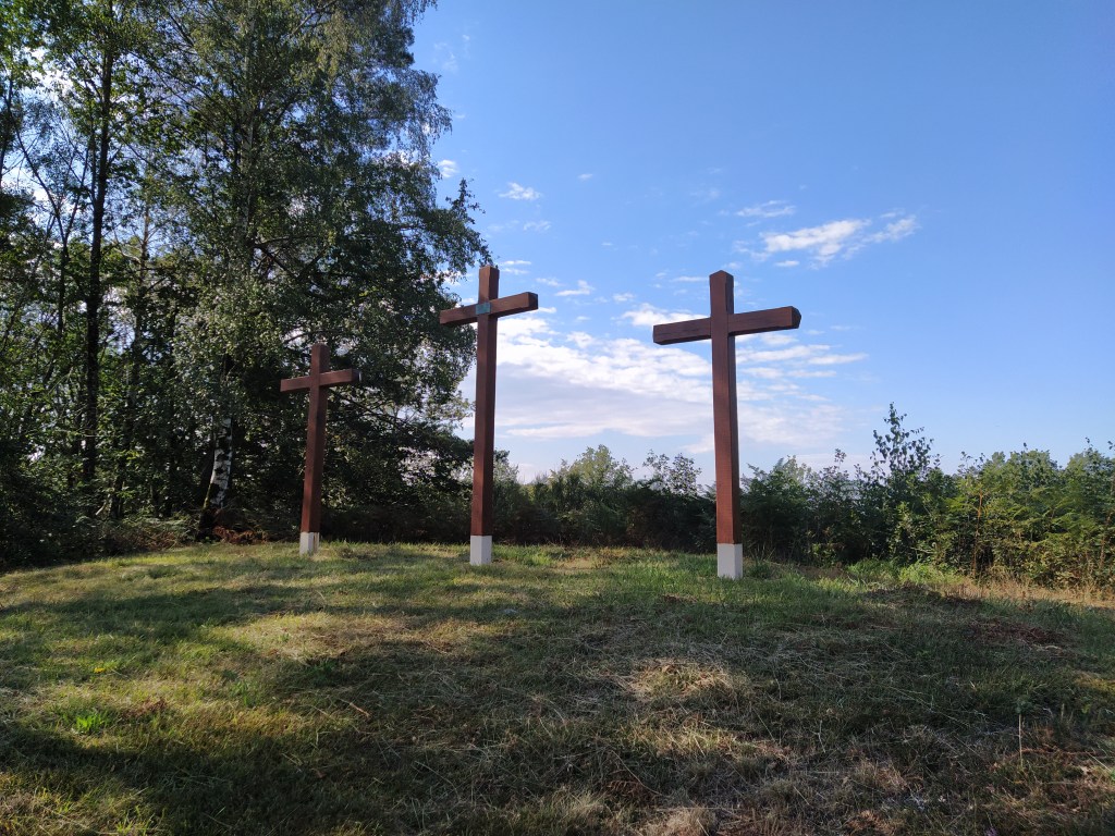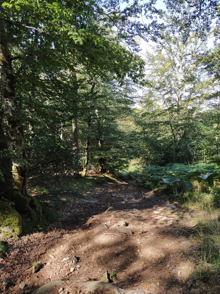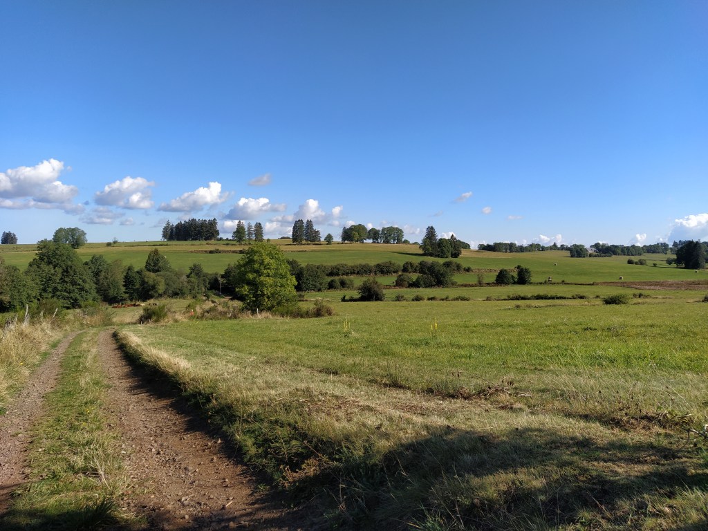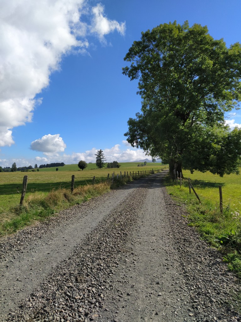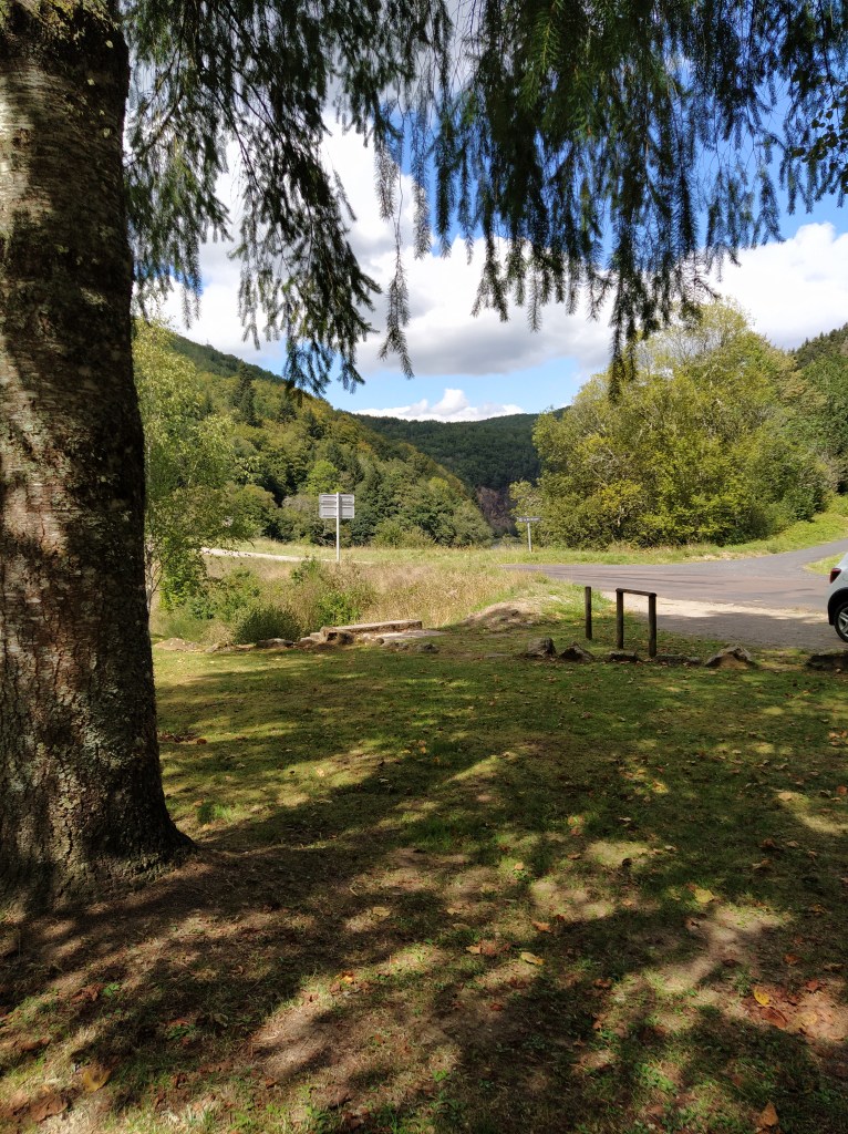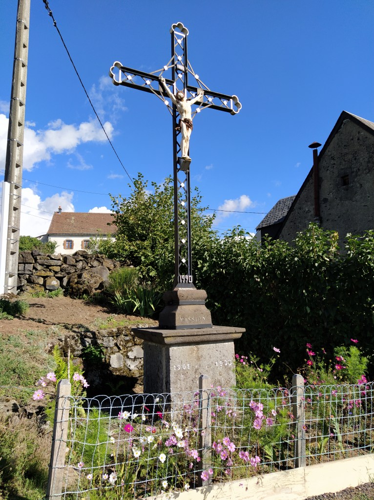 In my file I had a walk called ‘le chapelle de Granges’ which started from Tauves and made its way up to the plateau, across the main road and then wound around a few villages before arriving back at the start. 9.2 km. Far too long a walk for Friday but the mention of a medieval chapel and the vestiges of its accompanying chateau sparked my interest. Himself grunted assent so it was back to the starting point of the plateau walk opposite the cheese factory where we could pick up the track to Granges and be able to park easily.