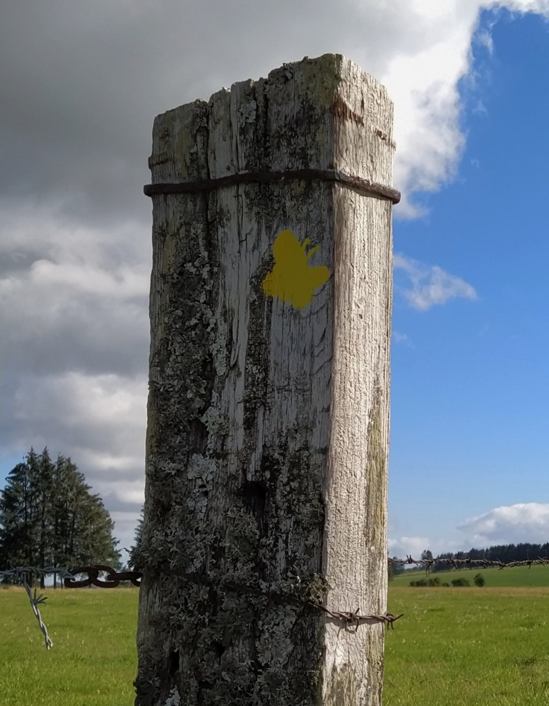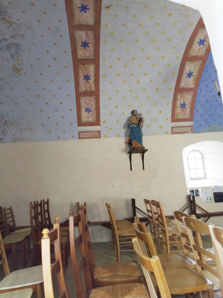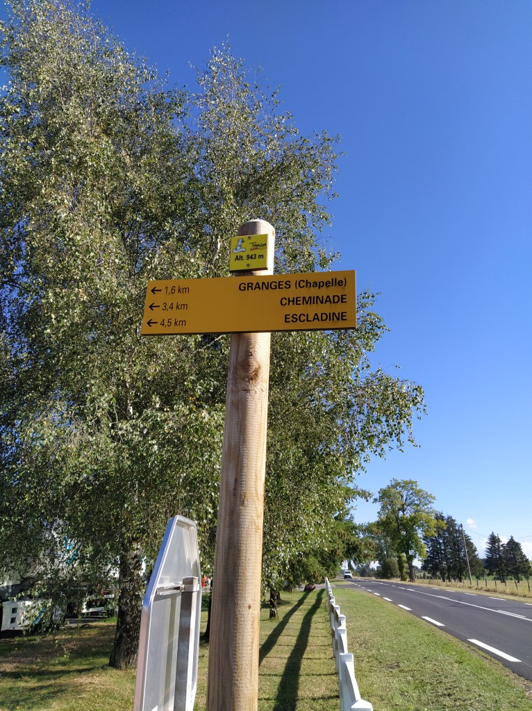 Conveniently, there was an ubiquitous yellow sign giving us the distance to the chapelle. An easy aller-retour of 3.2km. Perfect and an added bonus was no wind!