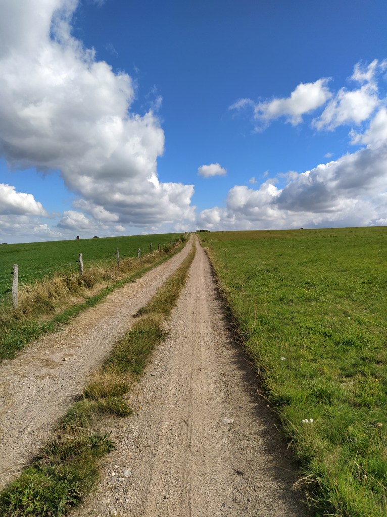 We set off along the track that ran between the two parts of the cheese factory and straight out into the downland. I waited to hear skylarks as it seemed the right environment but maybe that pesky wind keeps them at bay…or ‘les chasseurs’.