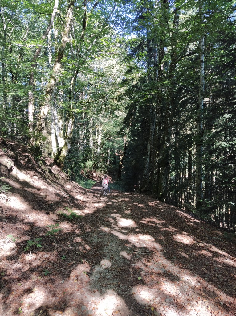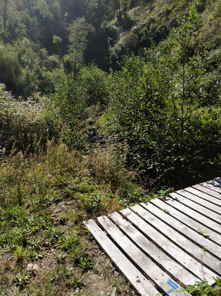 We were only half a kilometre from Granges. Gosh, this felt so easy after the clambering and scrambling we’d been doing this week! The cowbells were getting noisier and a few cows with long curving horns stared dispassionately from above our heads.