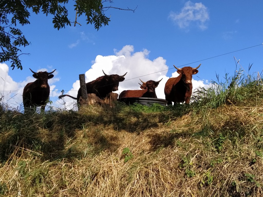 So back past the cows with their jangling bells, back past the little stream and back past a field which seemed to contain a bull we hadn’t noticed before!