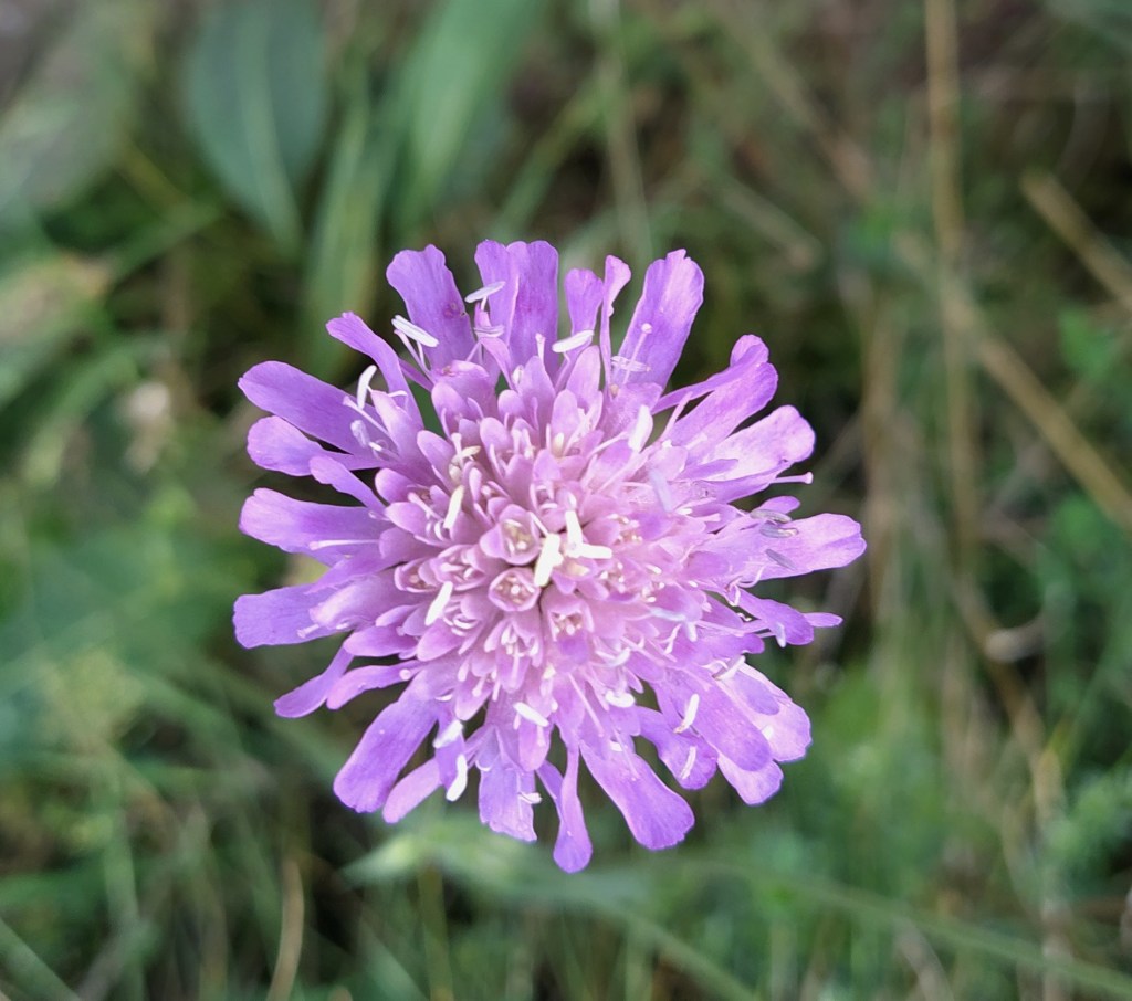 After a while we began to drop down between fields with the ever present sound of cow bells coming from somewhere in front of us. I dawdled, taking photos of hedgerow flowers, particularly excited to see a tiny wild pansy hidden in the grass.